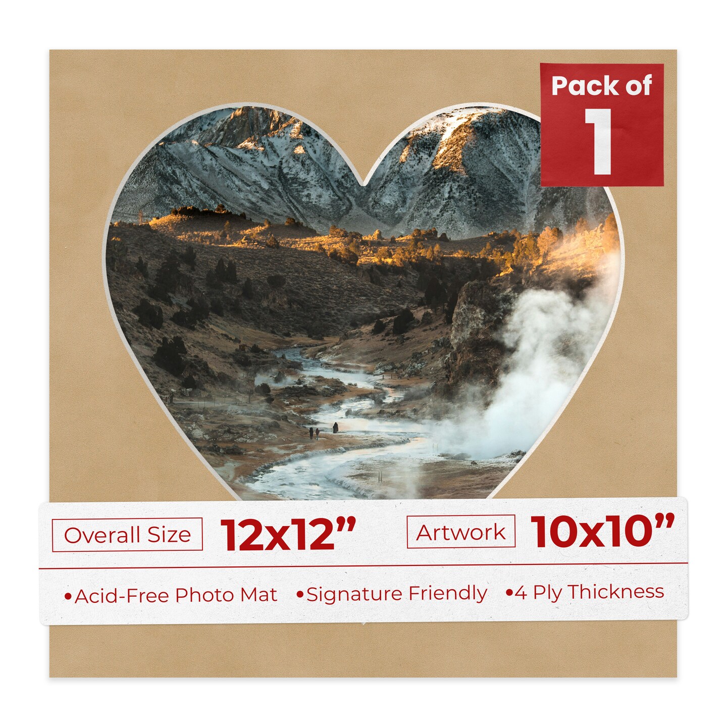Beige Suede Mat Board for 12x12 Frames - Heart Opening for 10x10 Photos