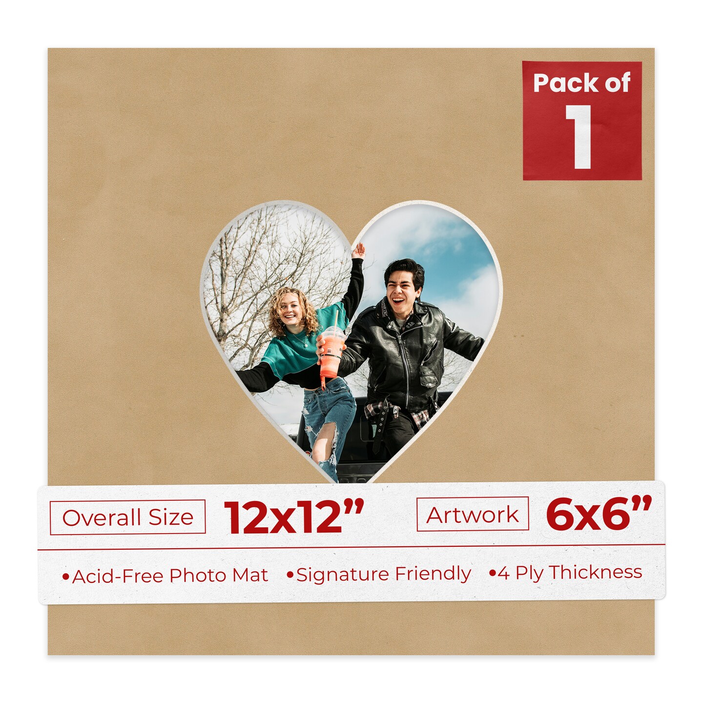 Beige Suede Mat Board for 12x12 Frames - Heart Opening for 6x6 Photos