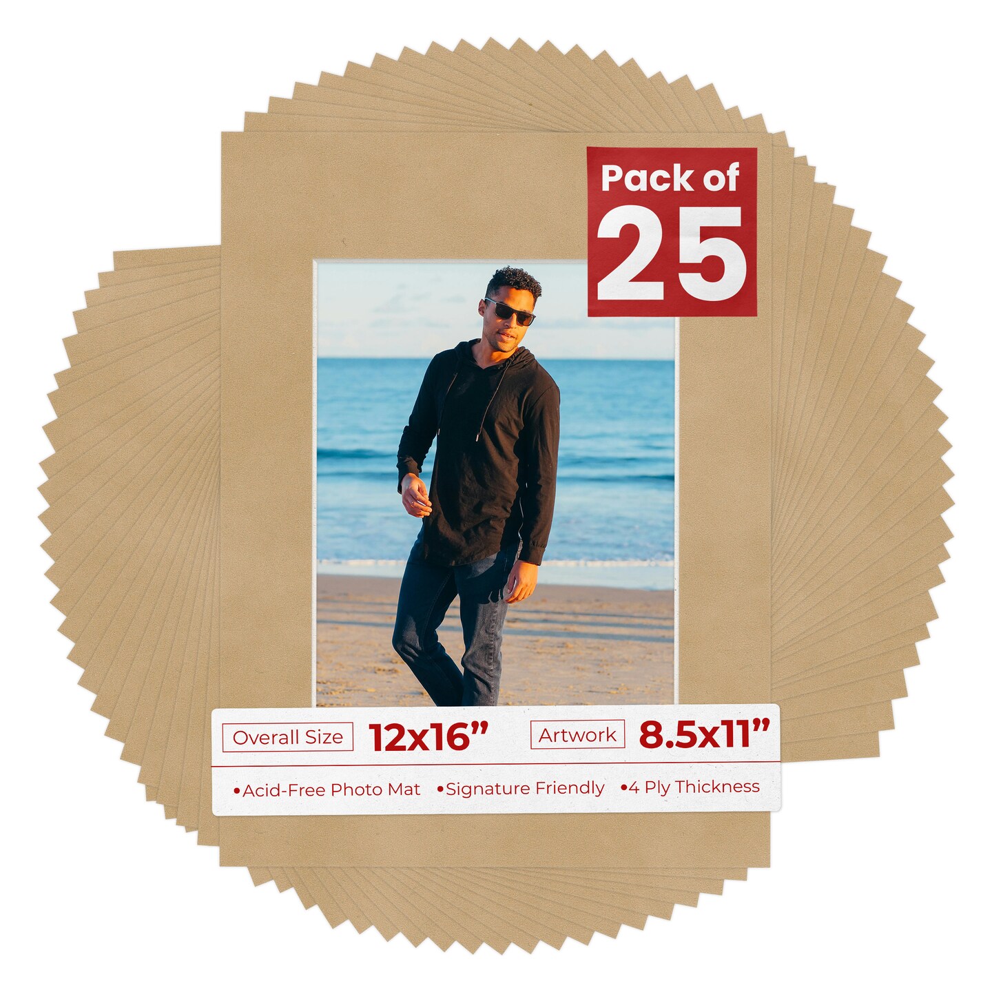Beige Suede Mat Board for 12x16 Frames - Fits 8.5x11 Photos