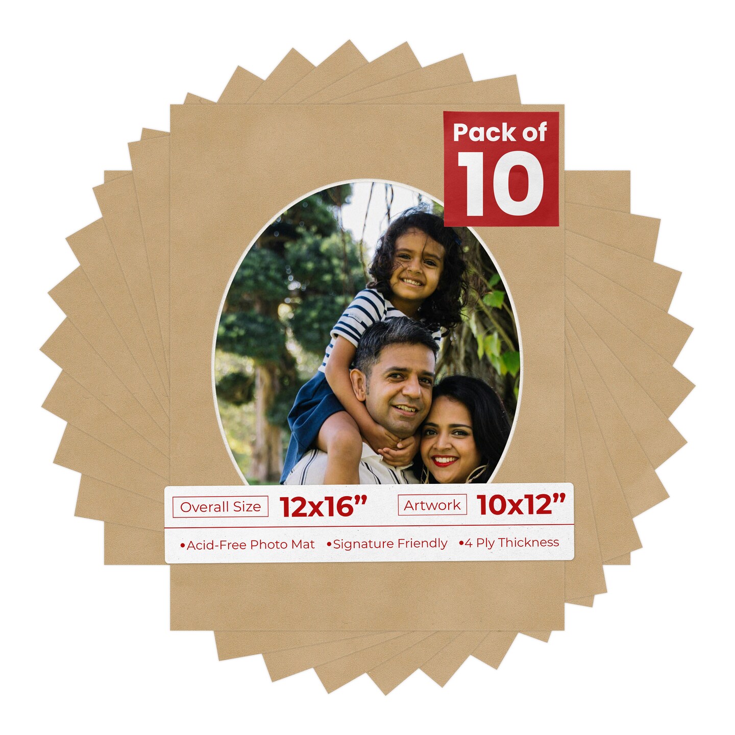 Beige Suede Mat Board for 12x16 Frames - Oval Opening for 10x12 Photos