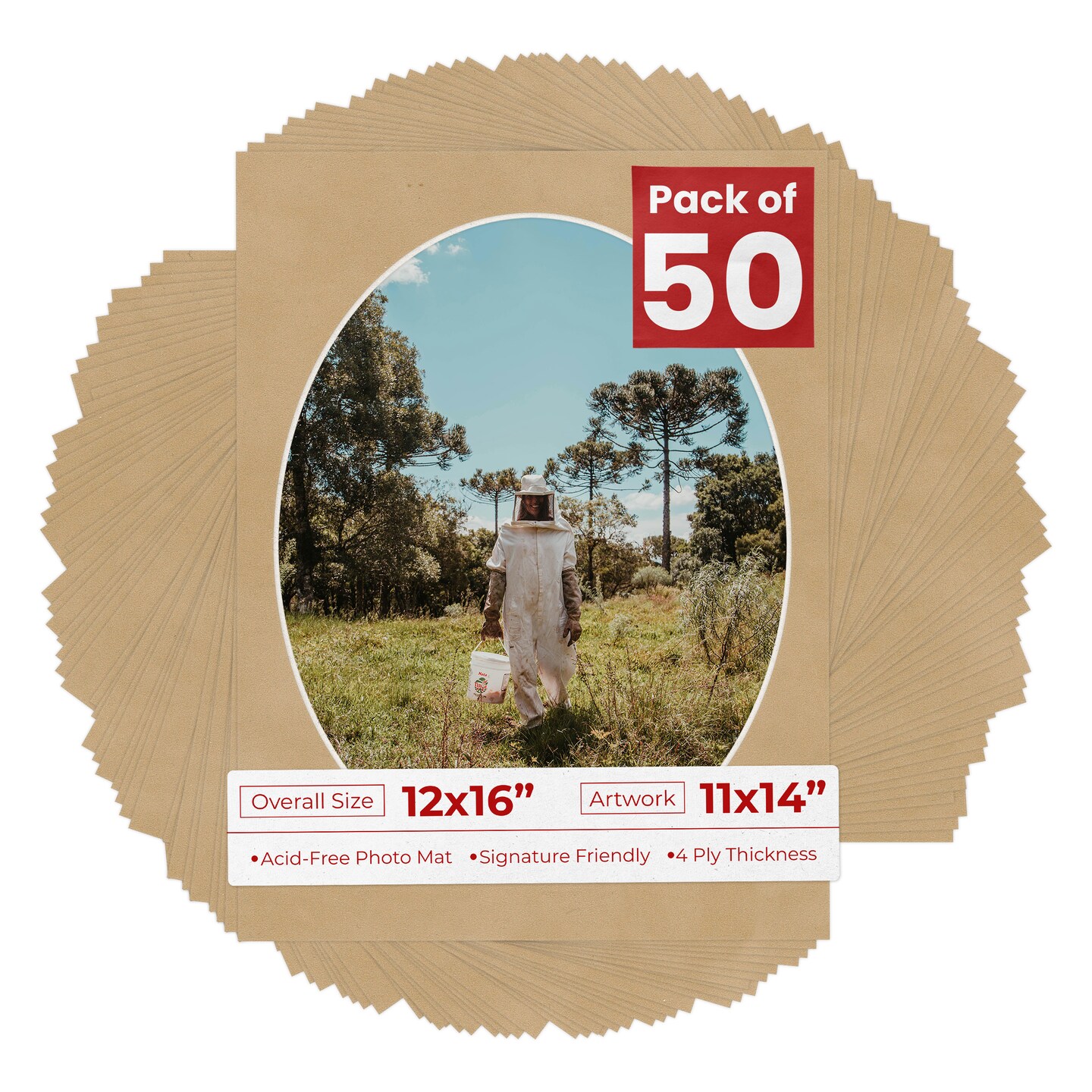 Beige Suede Mat Board for 12x16 Frames - Oval Opening for 11x14 Photos