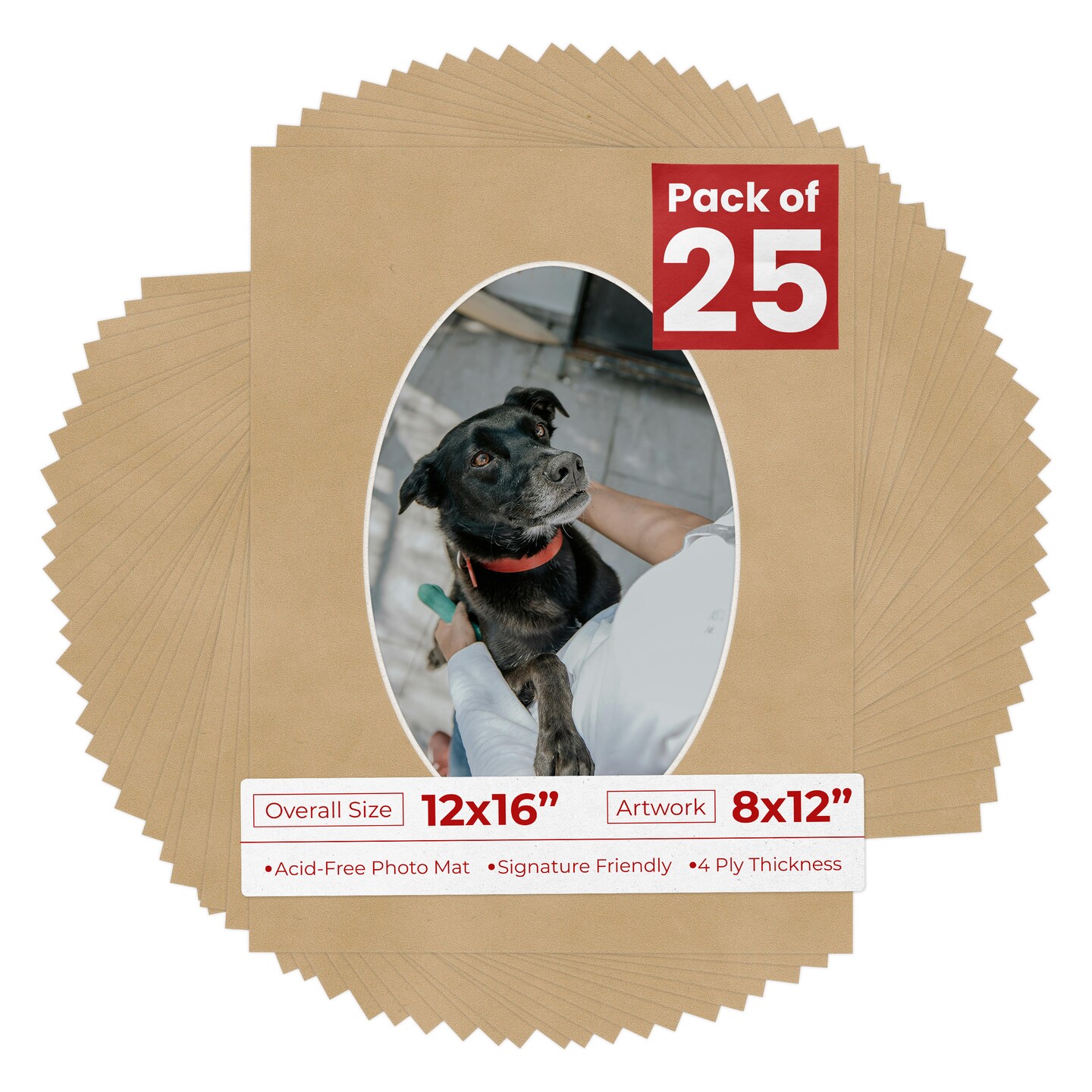 Beige Suede Mat Board for 12x16 Frames - Oval Opening for 8x12 Photos