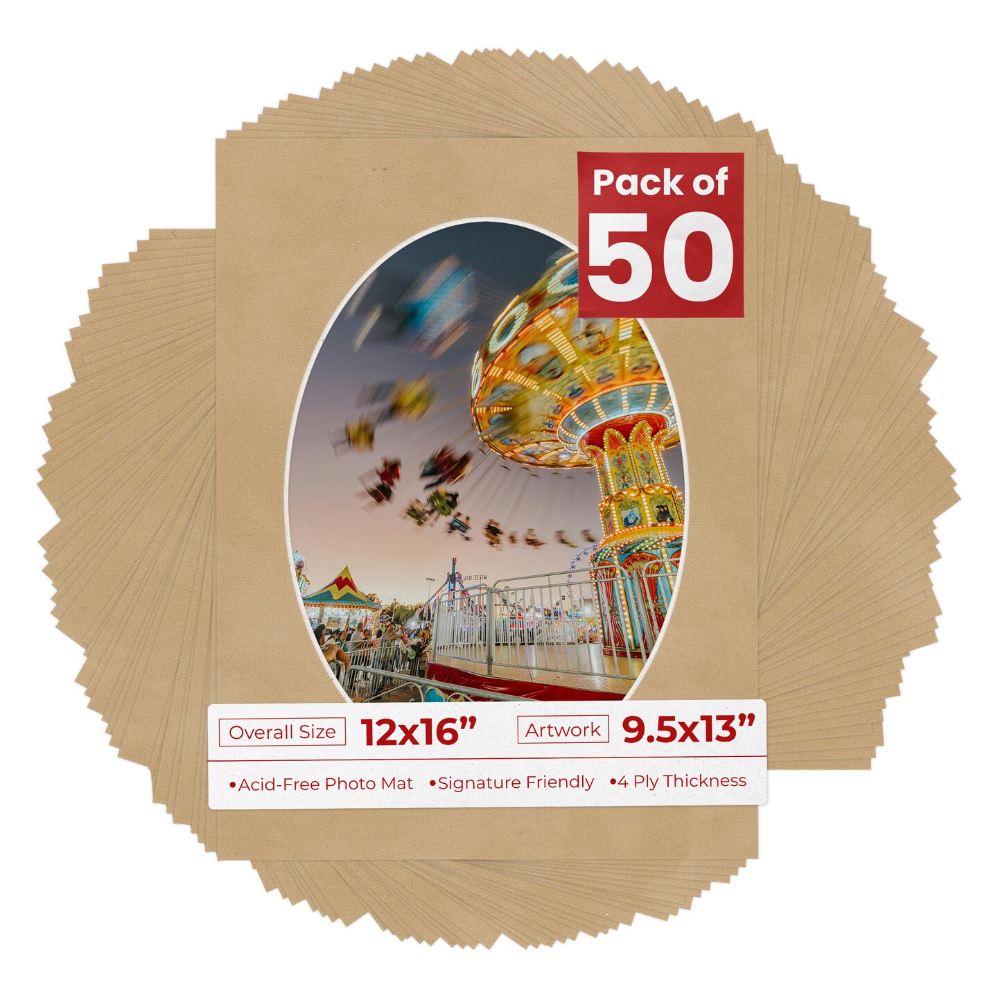 Beige Suede Mat Board for 12x16 Frames - Oval Opening for 9.5x13 Photos