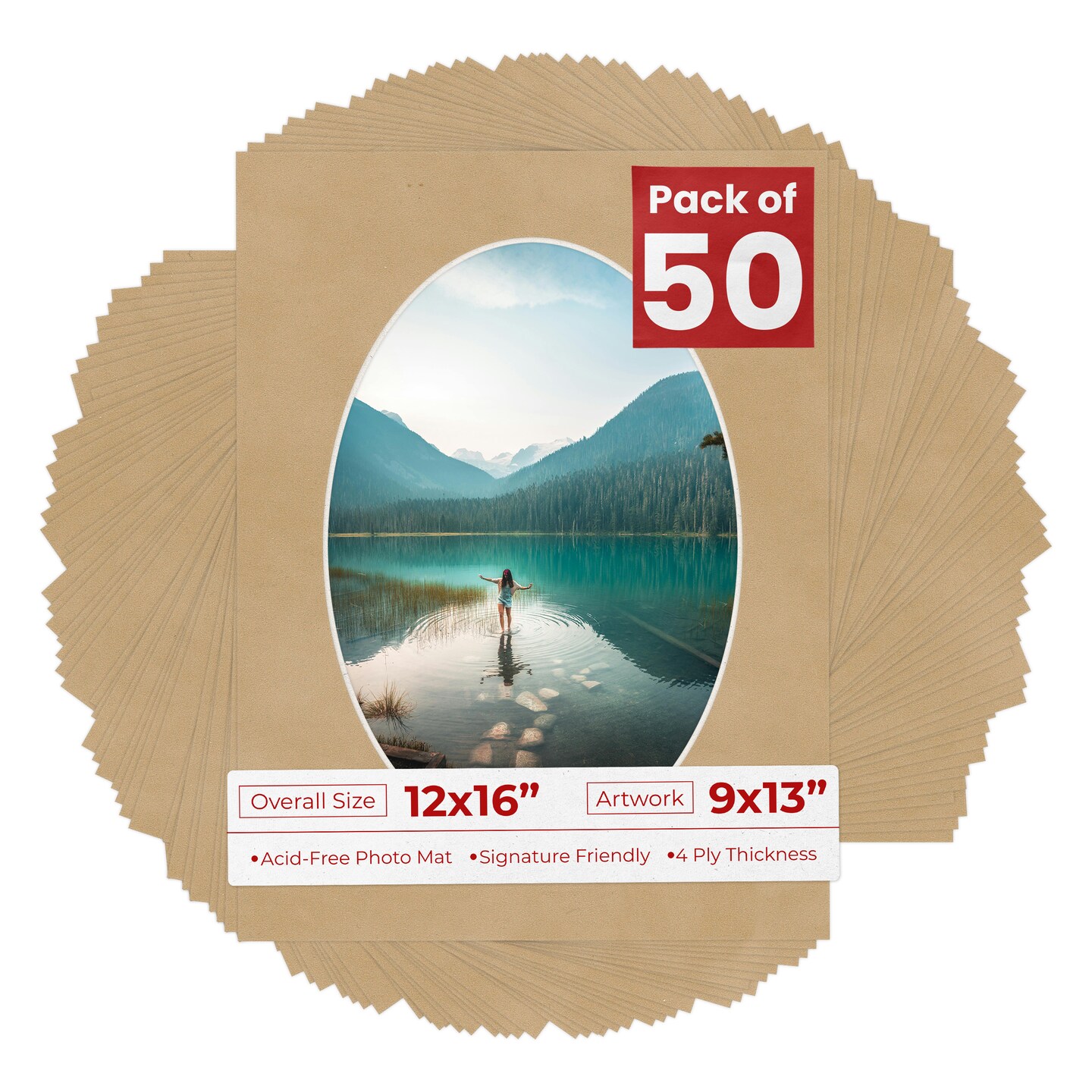 Beige Suede Mat Board for 12x16 Frames - Oval Opening for 9x13 Photos