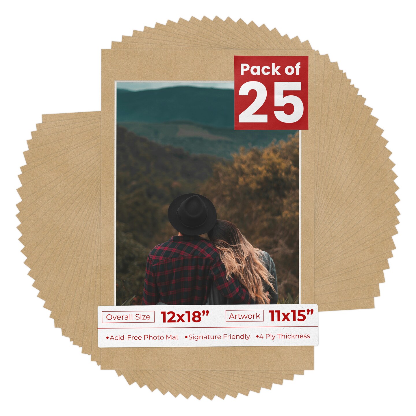Beige Suede Mat Board for 12x18 Frames - Fits 11x15 Photos