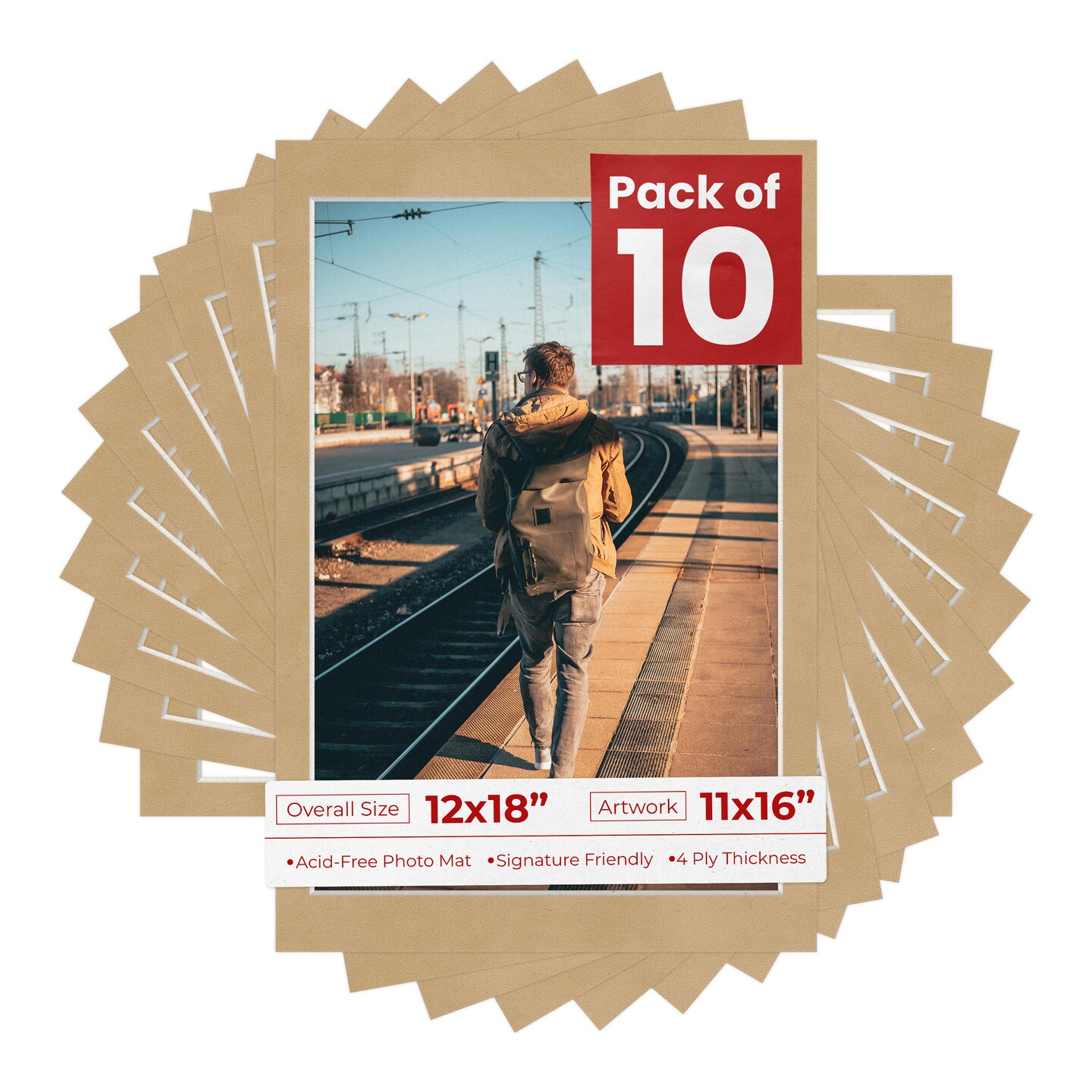 Beige Suede Mat Board for 12x18 Frames - Fits 11x16 Photos