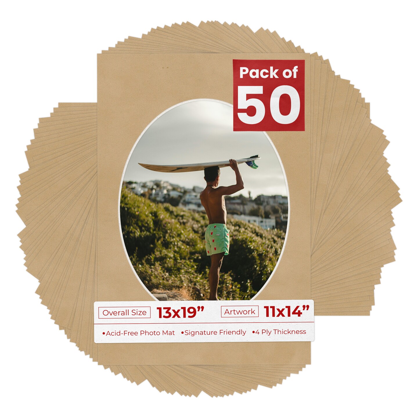 Beige Suede Mat Board for 13x19 Frames - Oval Opening for 11x14 Photos