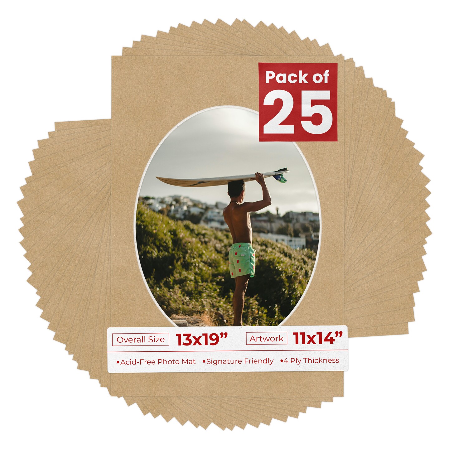 Beige Suede Mat Board for 13x19 Frames - Oval Opening for 11x14 Photos