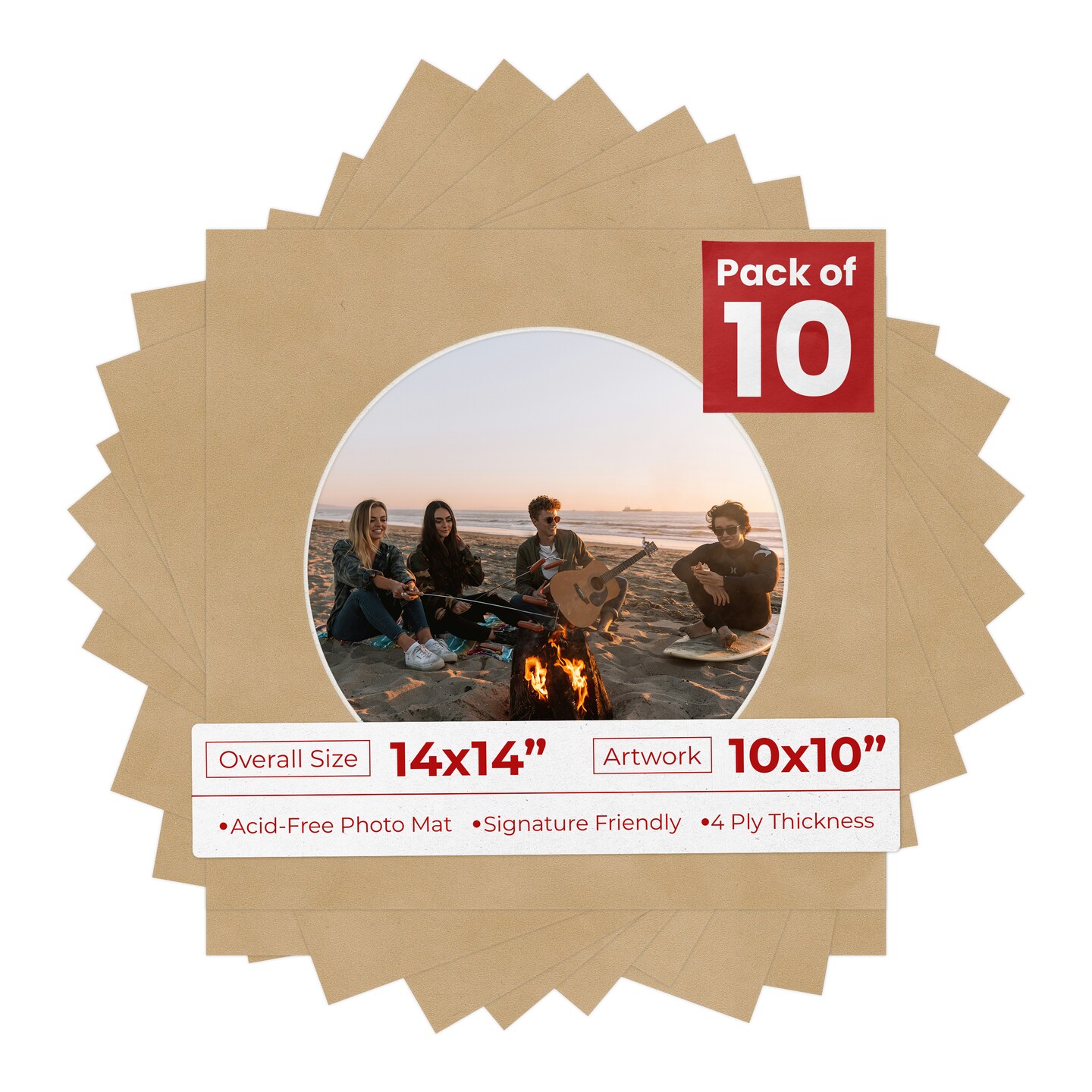 Beige Suede Mat Board for 14x14 Frames - Circle Opening for 10x10 Photos