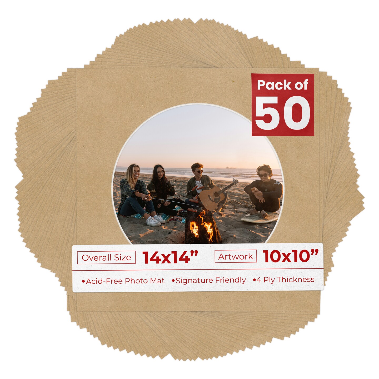 Beige Suede Mat Board for 14x14 Frames - Circle Opening for 10x10 Photos