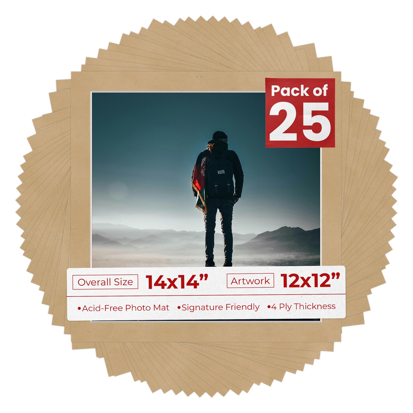 Beige Suede Mat Board for 14x14 Frames - Fits 12x12 Photos
