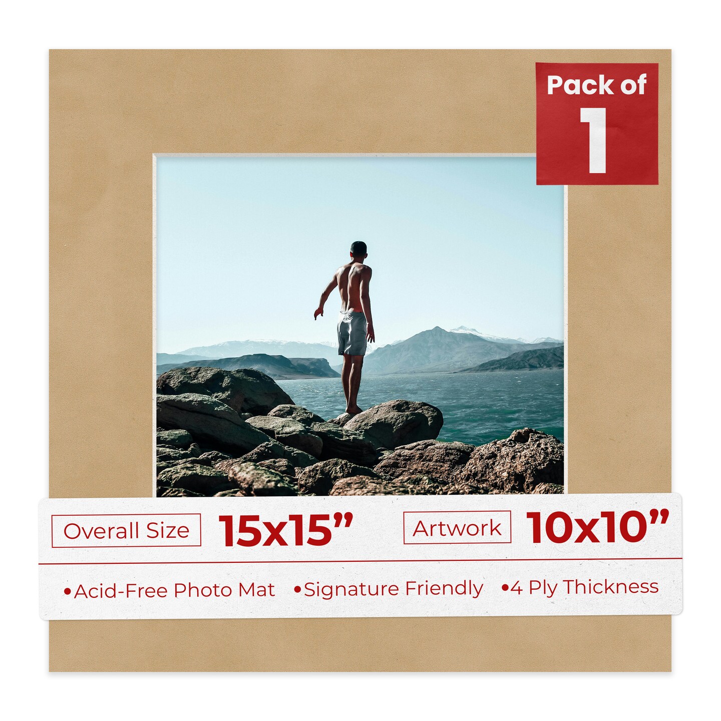 Beige Suede Mat Board for 15x15 Frames - Fits 10x10 Photos