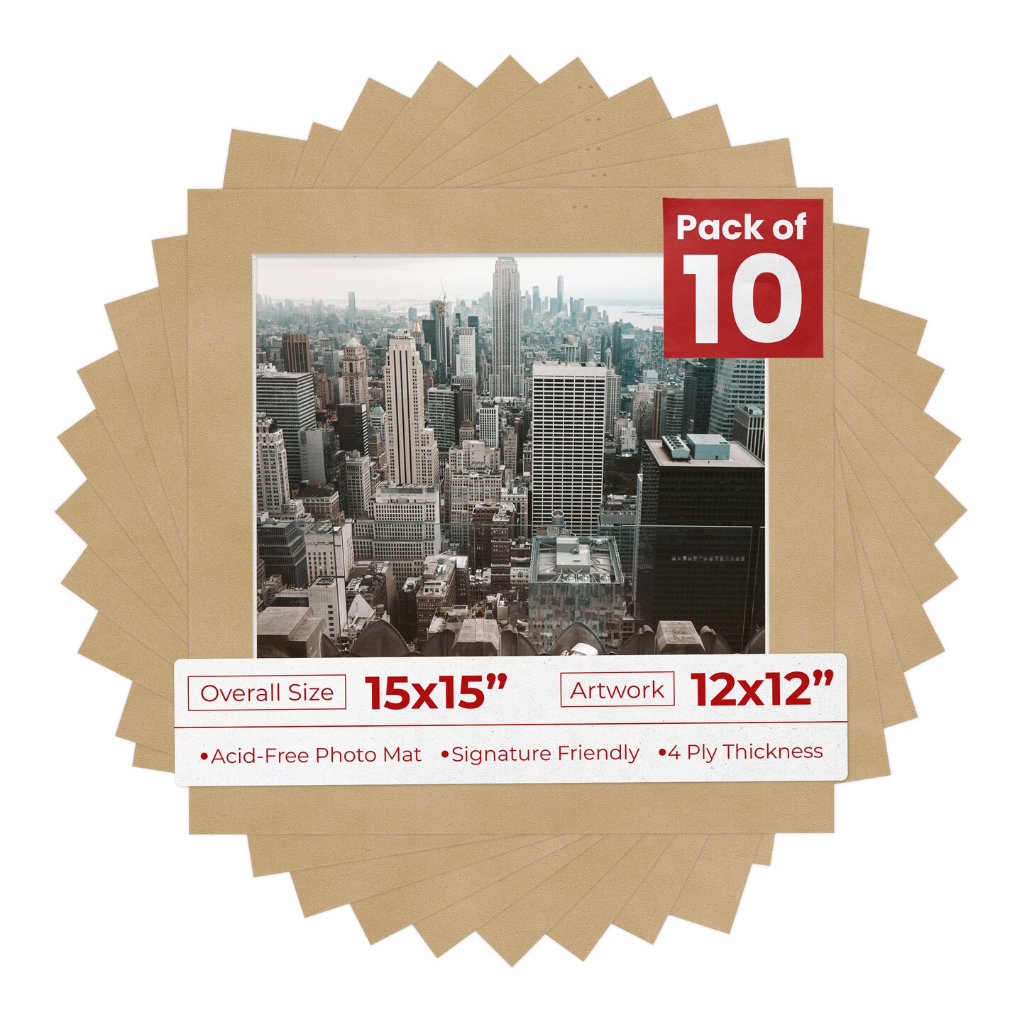 Beige Suede Mat Board for 15x15 Frames - Fits 12x12 Photos