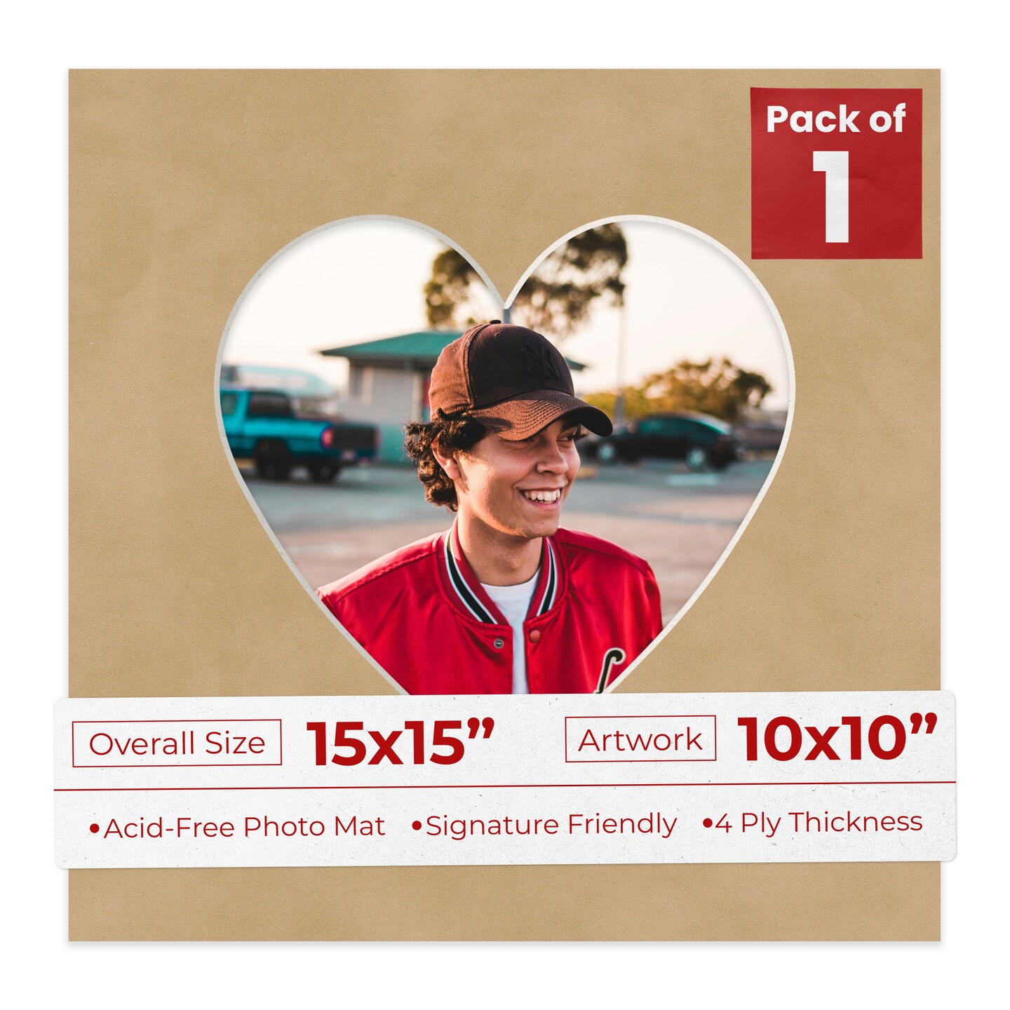 Beige Suede Mat Board for 15x15 Frames - Heart Opening for 10x10 Photos