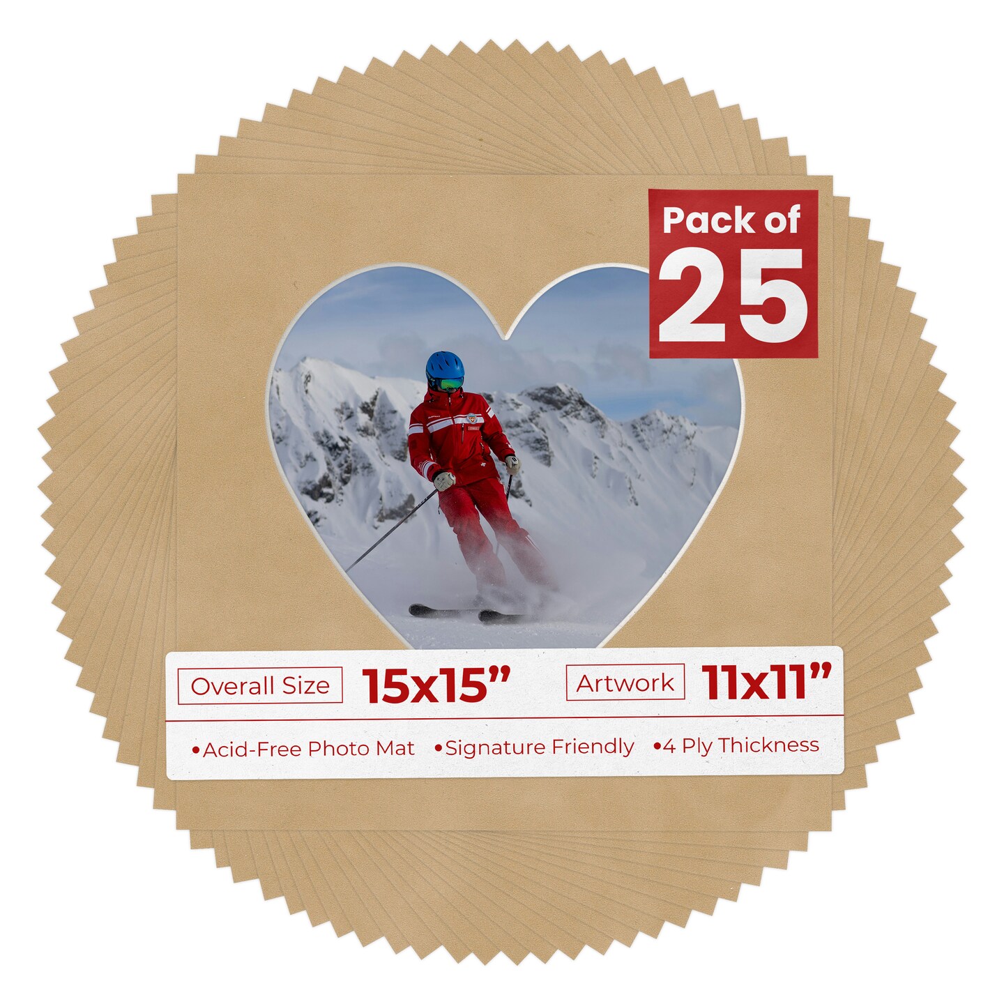 Beige Suede Mat Board for 15x15 Frames - Heart Opening for 11x11 Photos
