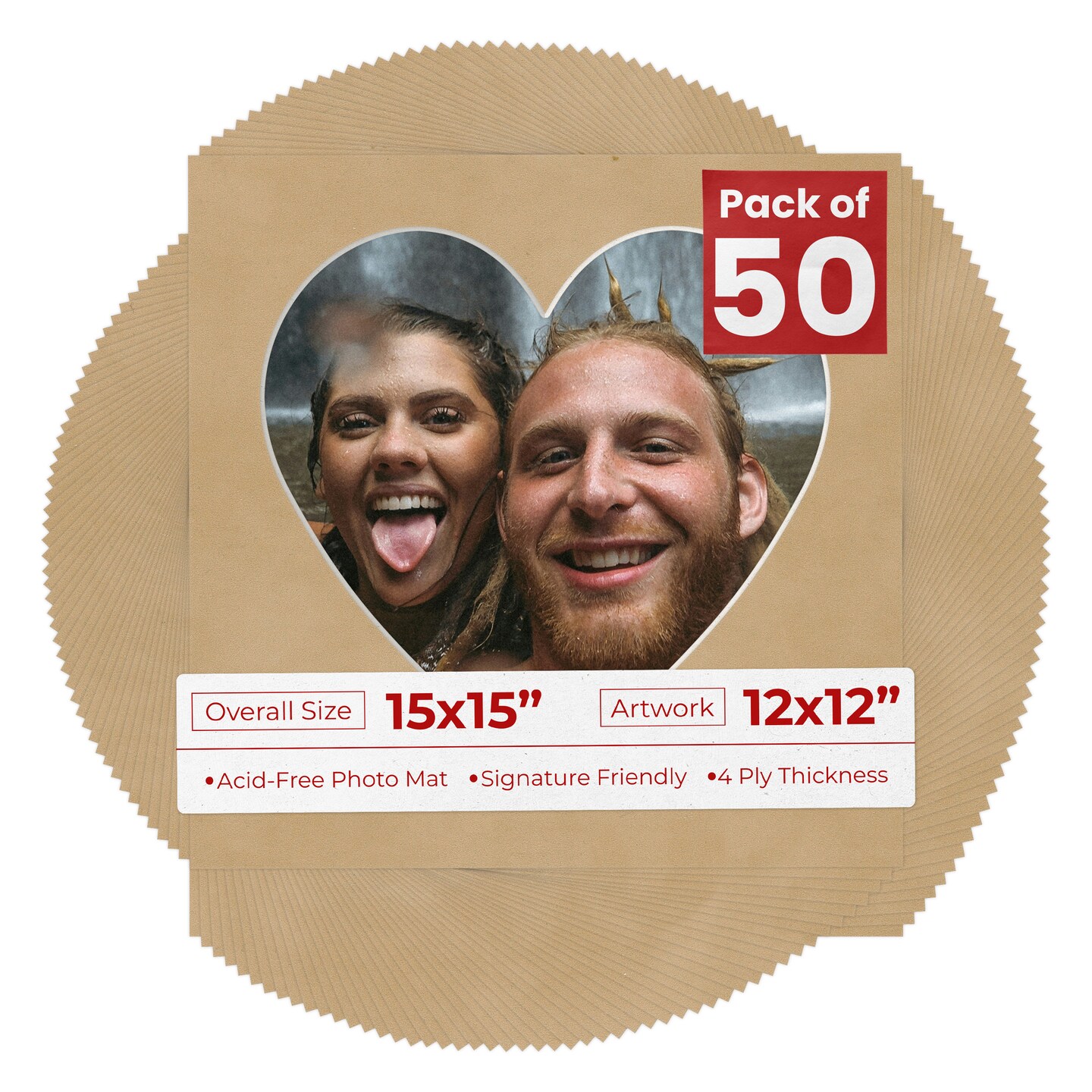 Beige Suede Mat Board for 15x15 Frames - Heart Opening for 12x12 Photos