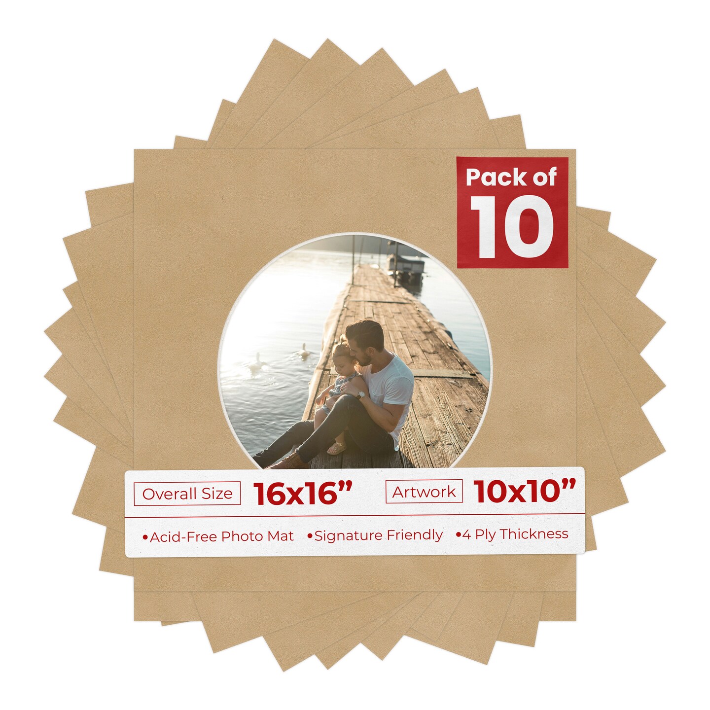 Beige Suede Mat Board for 16x16 Frames - Circle Opening for 10x10 Photos