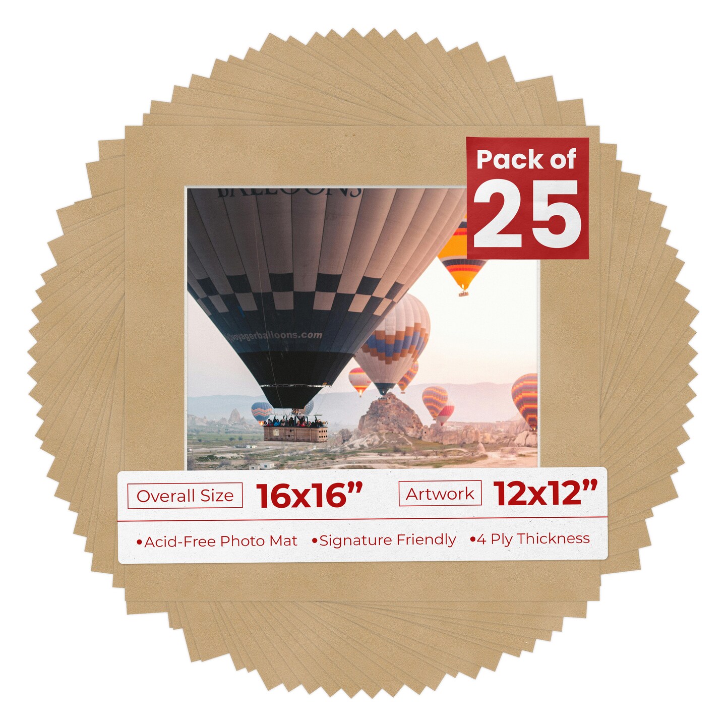 Beige Suede Mat Board for 16x16 Frames - Fits 12x12 Photos