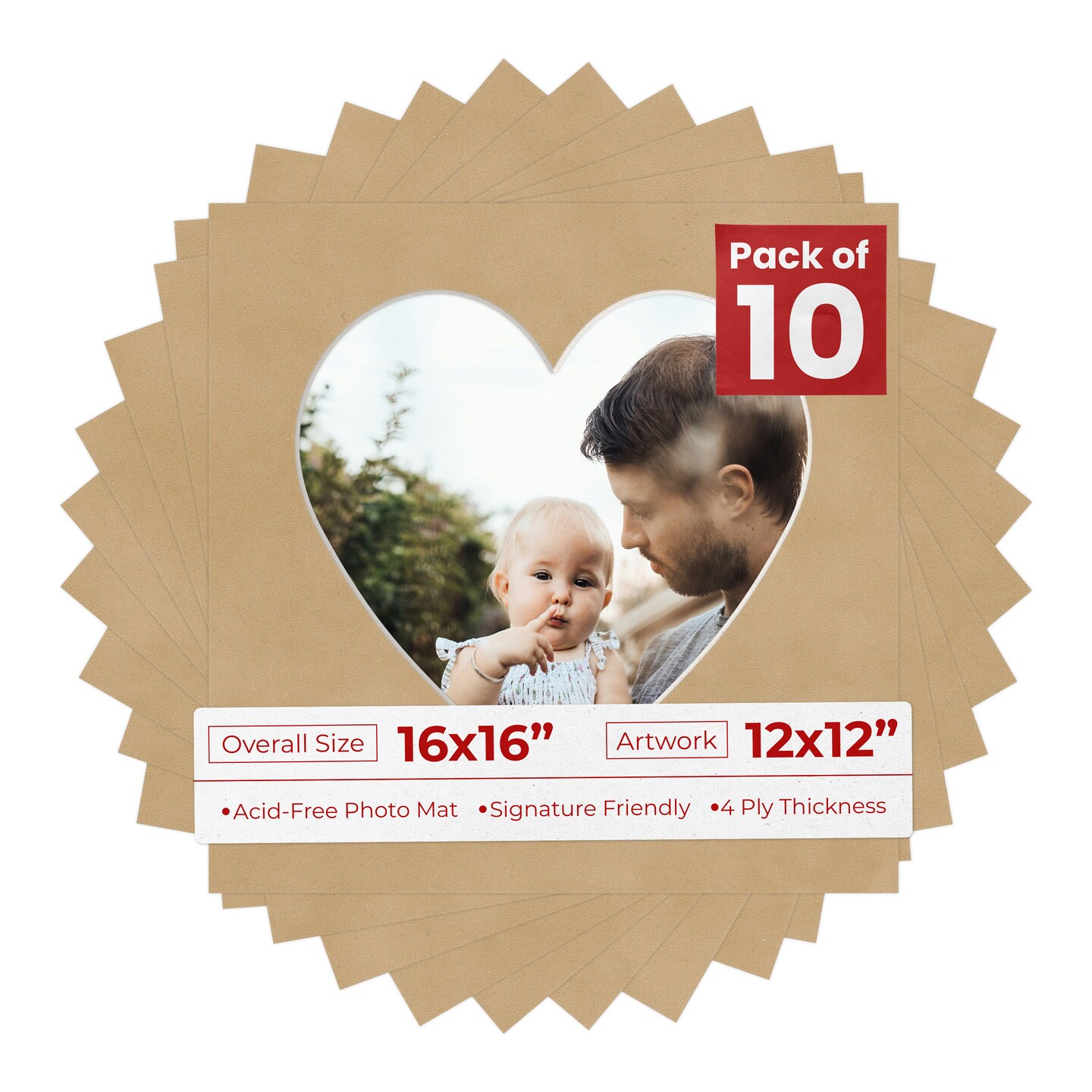 Beige Suede Mat Board for 16x16 Frames - Heart Opening for 12x12 Photos