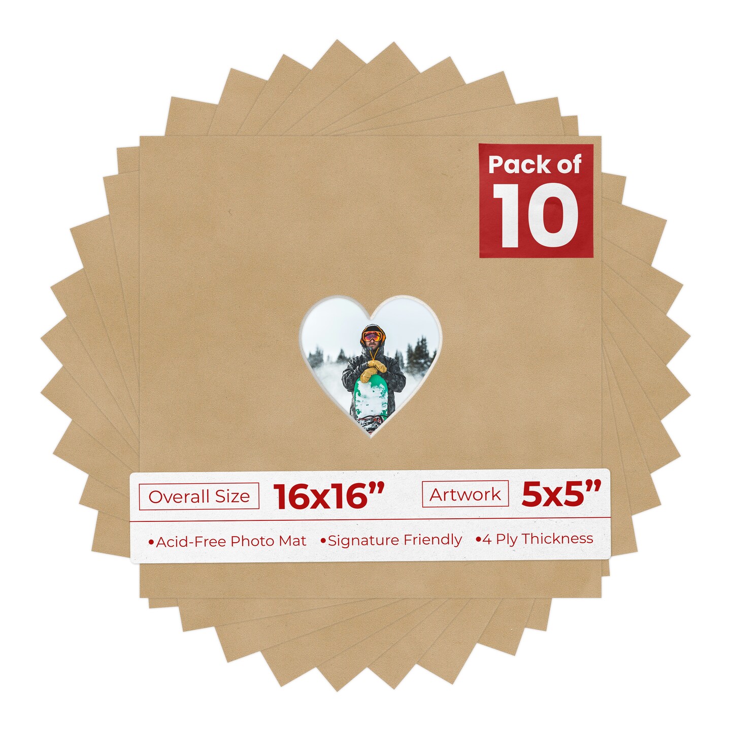 Beige Suede Mat Board for 16x16 Frames - Heart Opening for 5x5 Photos
