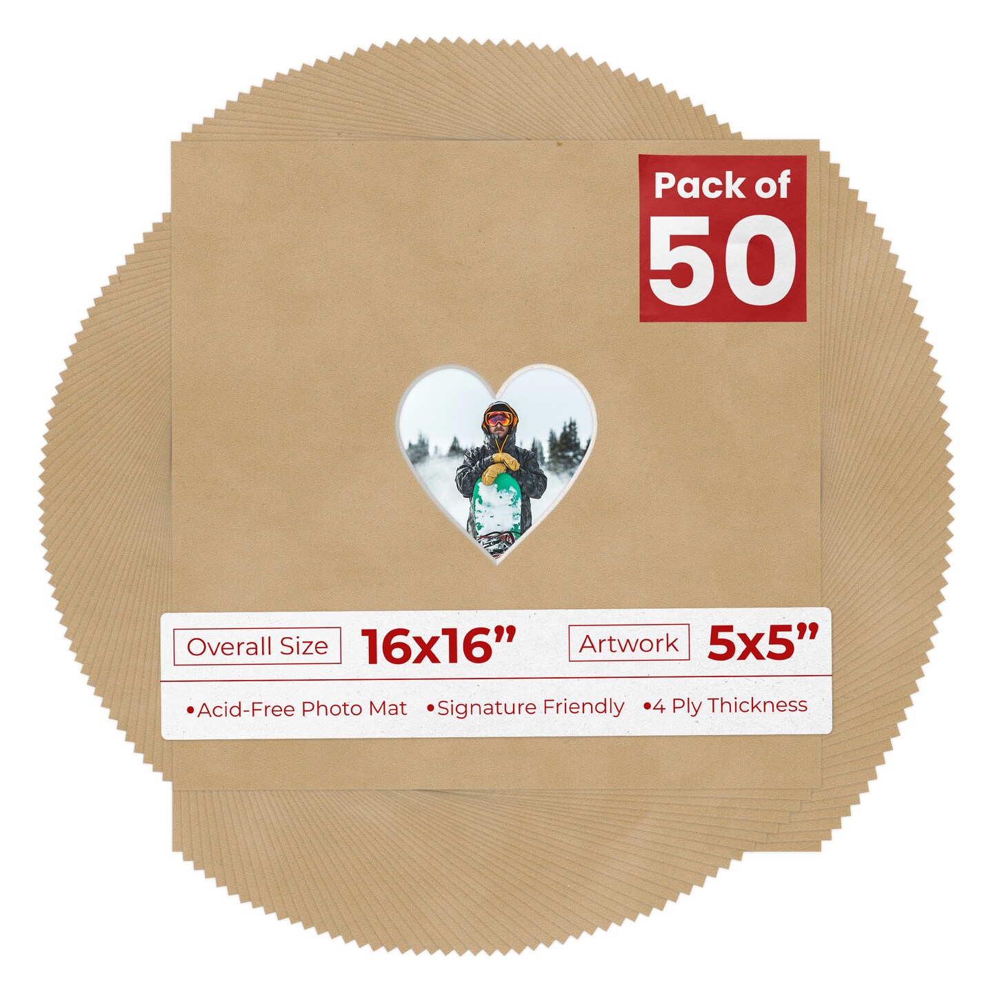 Beige Suede Mat Board for 16x16 Frames - Heart Opening for 5x5 Photos