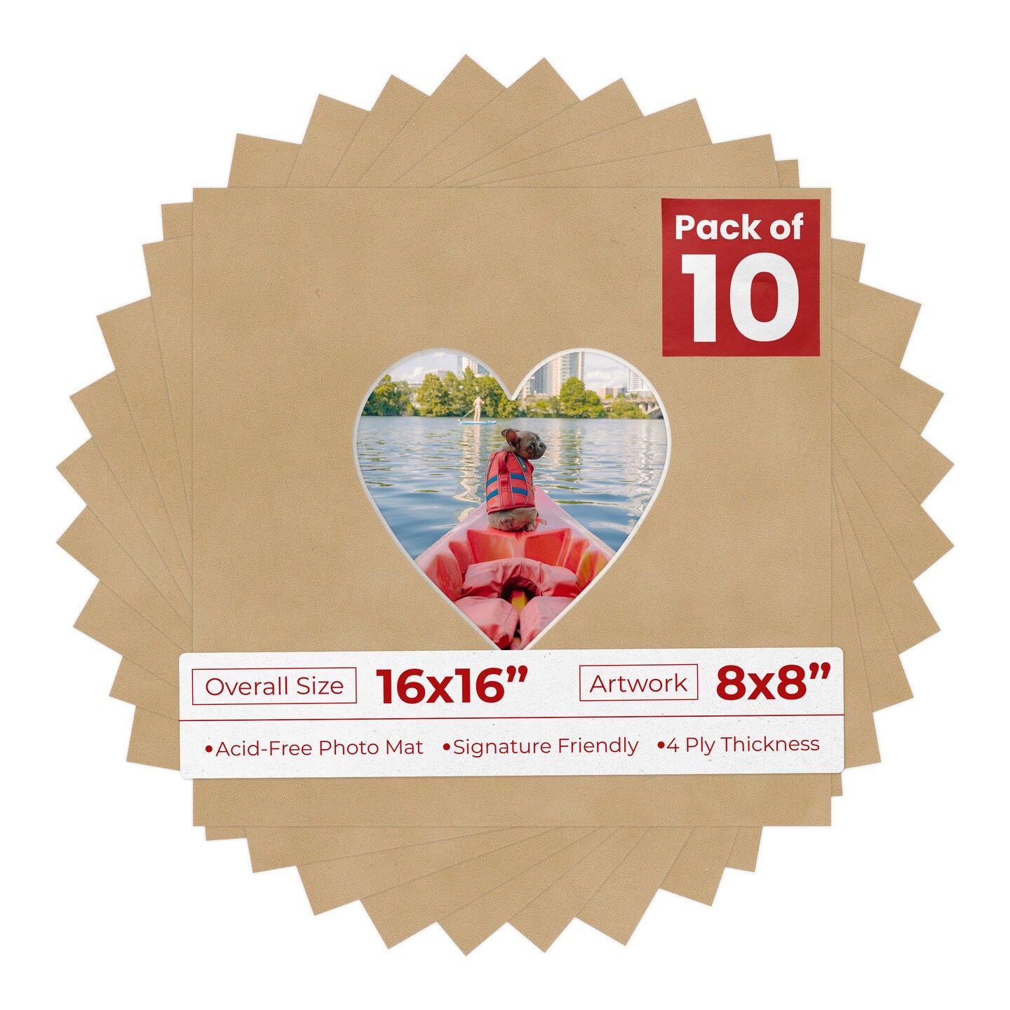 Beige Suede Mat Board for 16x16 Frames - Heart Opening for 8x8 Photos