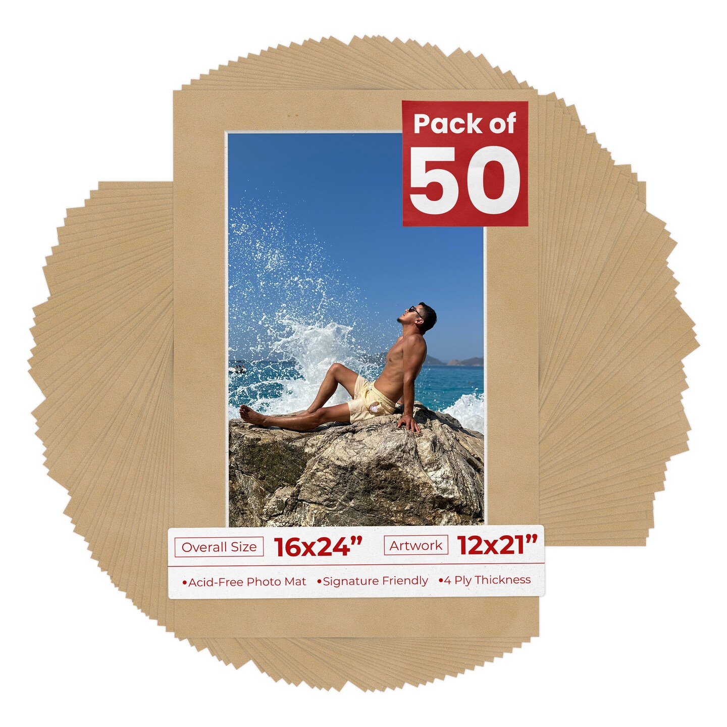 Beige Suede Mat Board for 16x24 Frames - Fits 12x21 Photos