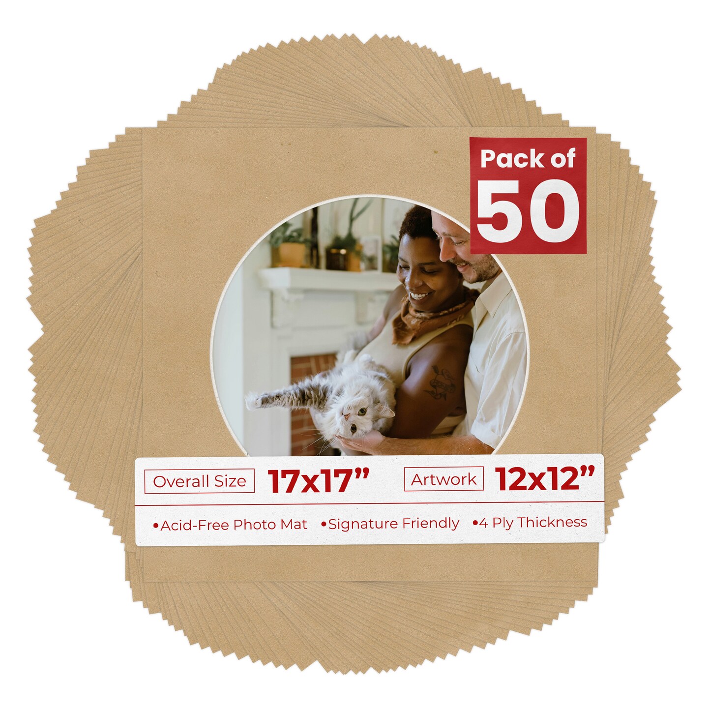 Beige Suede Mat Board for 17x17 Frames - Circle Opening for 12x12 Photos