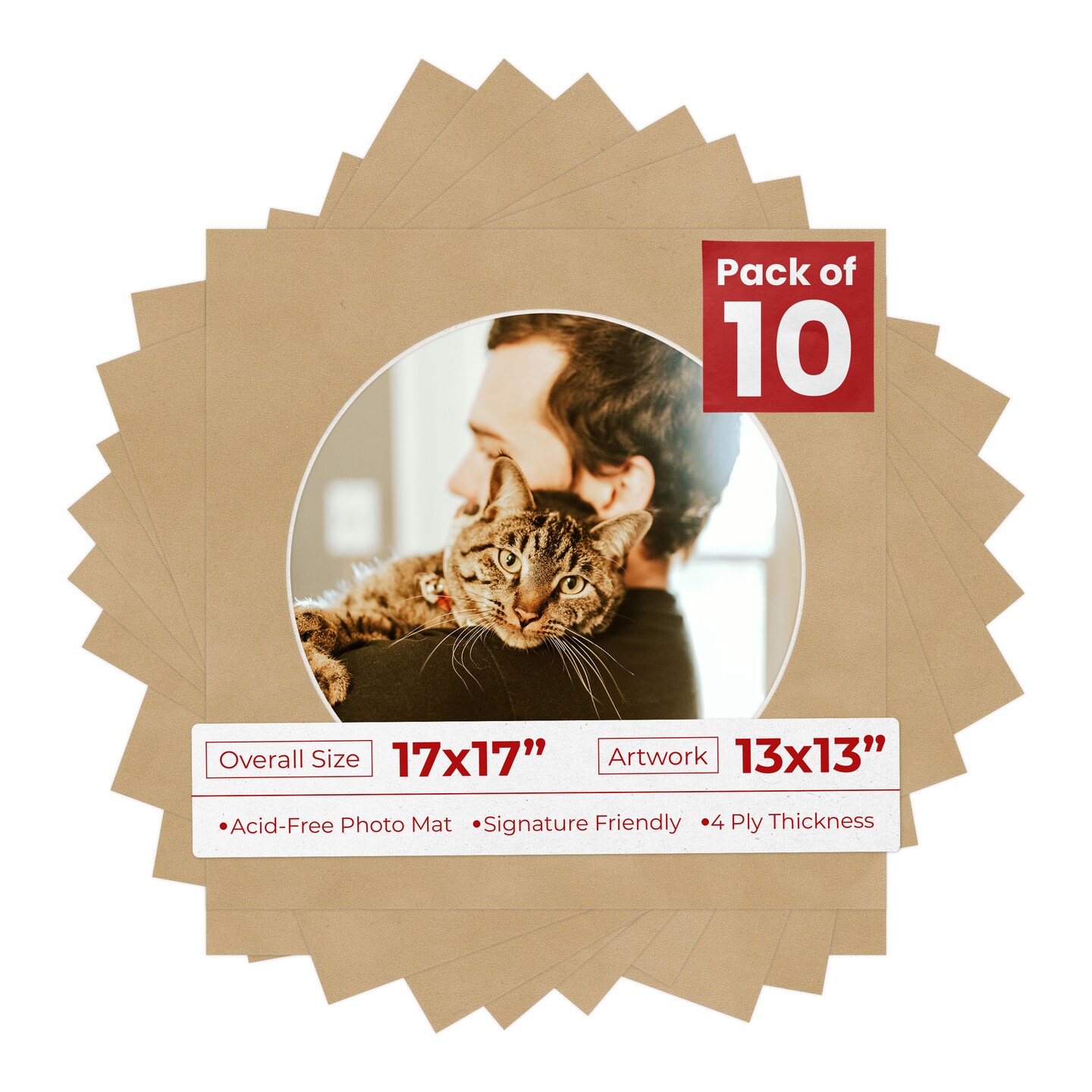 Beige Suede Mat Board for 17x17 Frames - Circle Opening for 13x13 Photos