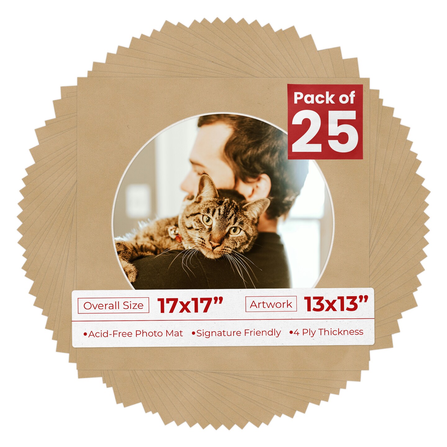 Beige Suede Mat Board for 17x17 Frames - Circle Opening for 13x13 Photos