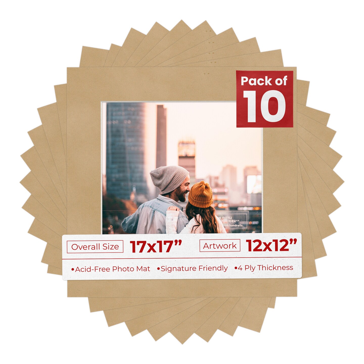 Beige Suede Mat Board for 17x17 Frames - Fits 12x12 Photos