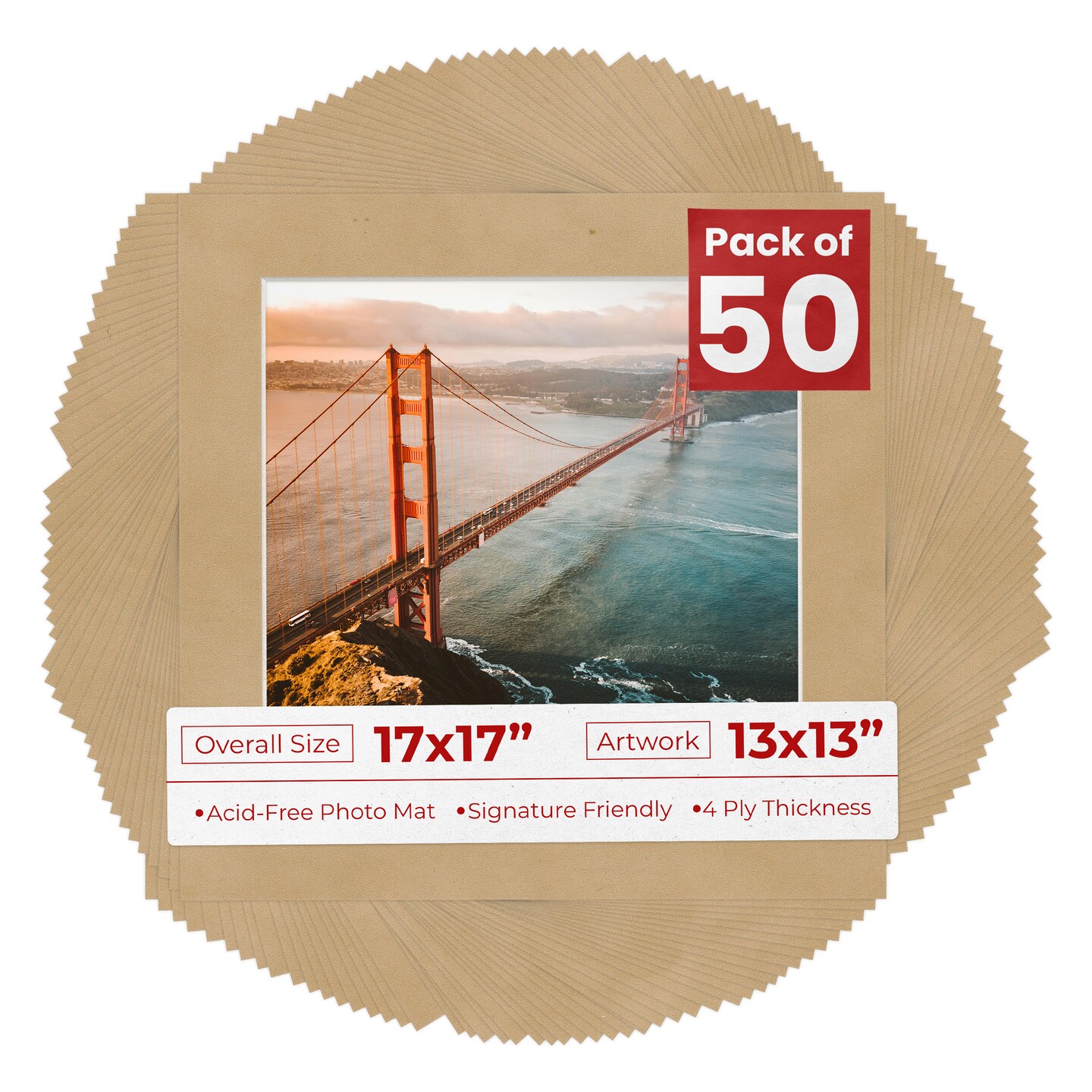 Beige Suede Mat Board for 17x17 Frames - Fits 13x13 Photos