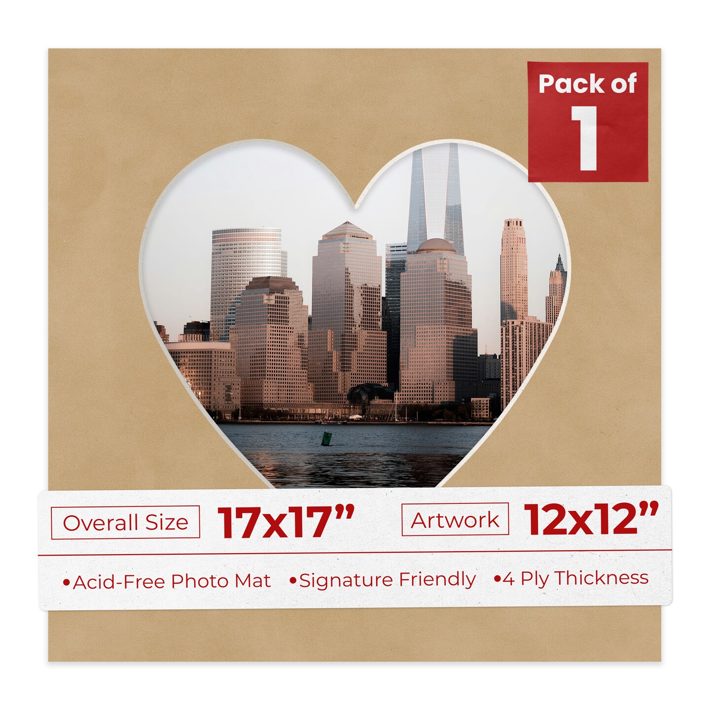 Beige Suede Mat Board for 17x17 Frames - Heart Opening for 12x12 Photos