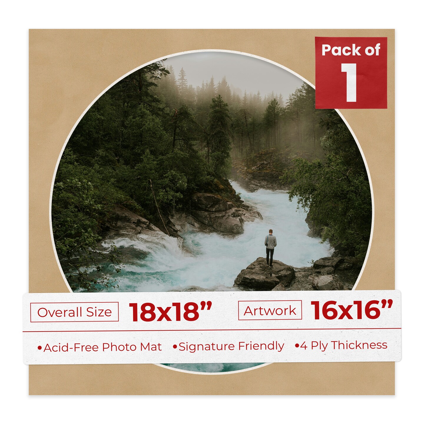 Beige Suede Mat Board for 18x18 Frames - Circle Opening for 16x16 Photos