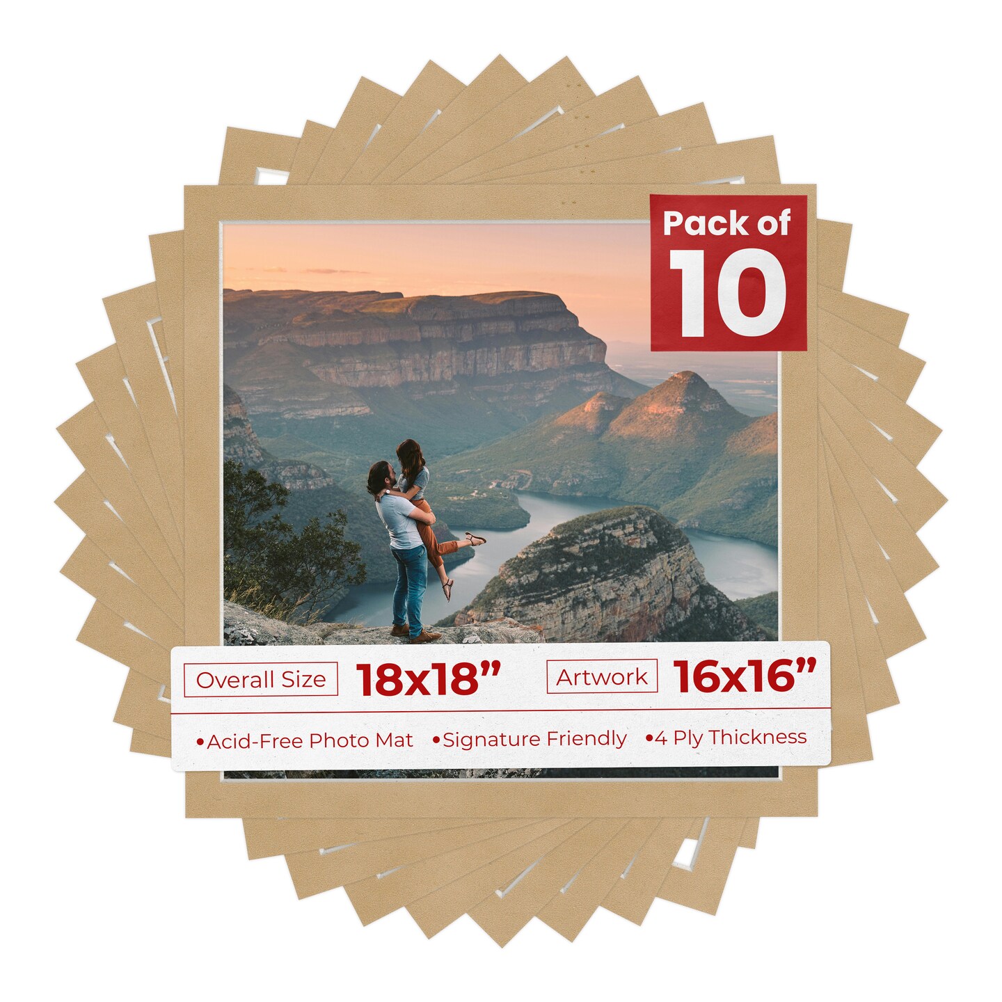 Beige Suede Mat Board for 18x18 Frames - Fits 16x16 Photos