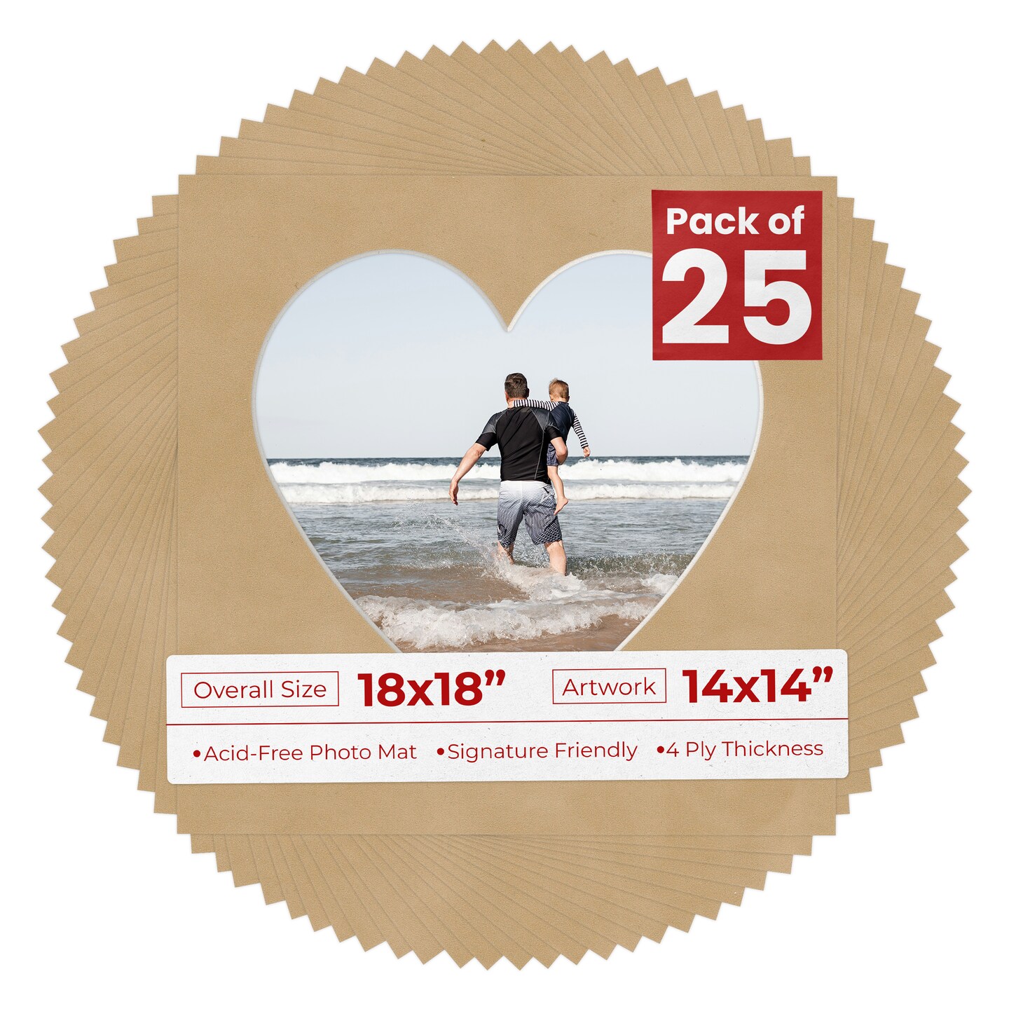 Beige Suede Mat Board for 18x18 Frames - Heart Opening for 14x14 Photos