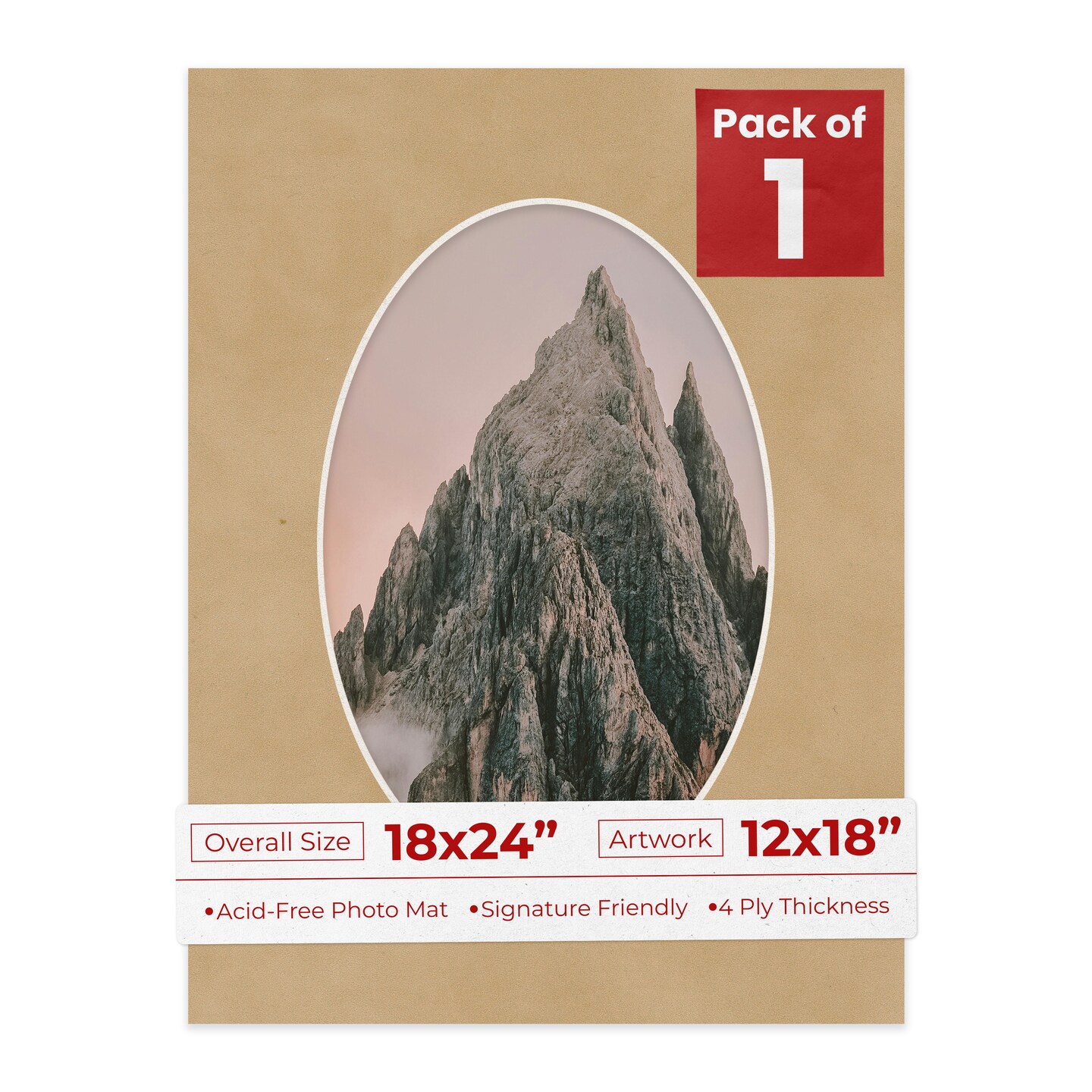 Beige Suede Mat Board for 18x24 Frames - Oval Opening for 12x18 Photos