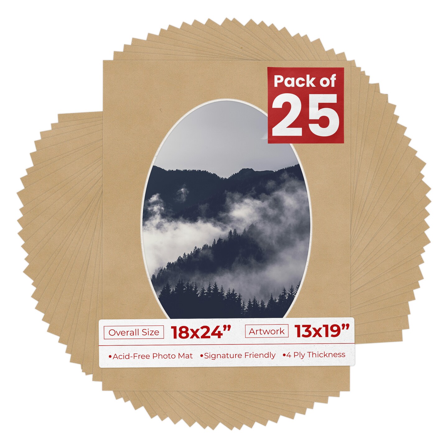 Beige Suede Mat Board for 18x24 Frames - Oval Opening for 13x19 Photos