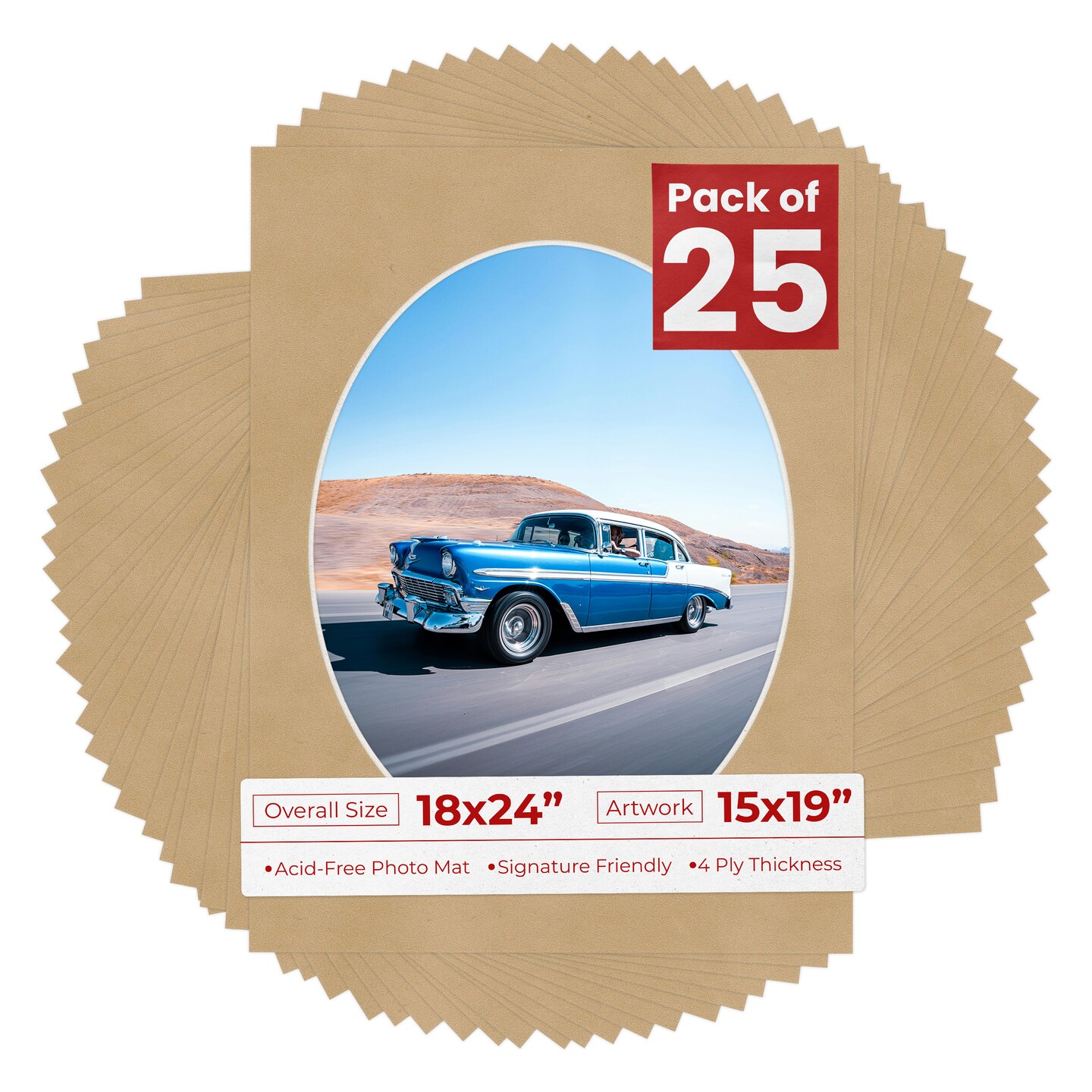 Beige Suede Mat Board for 18x24 Frames - Oval Opening for 15x19 Photos