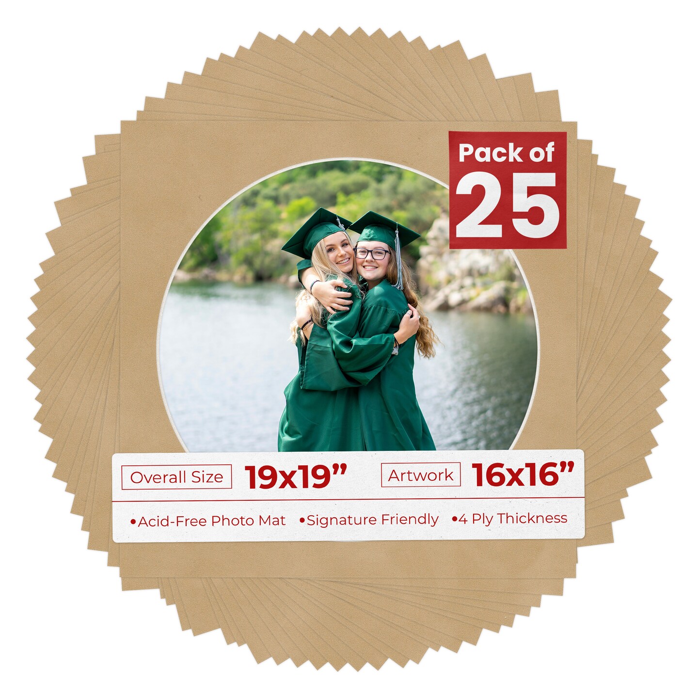 Beige Suede Mat Board for 19x19 Frames - Circle Opening for 16x16 Photos