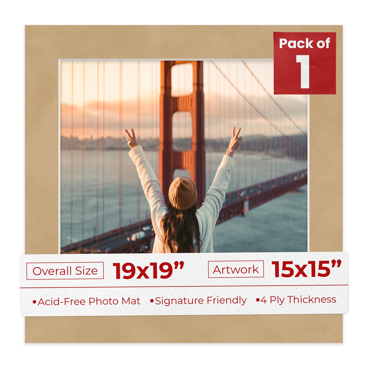 Beige Suede Mat Board for 19x19 Frames - Fits 15x15 Photos