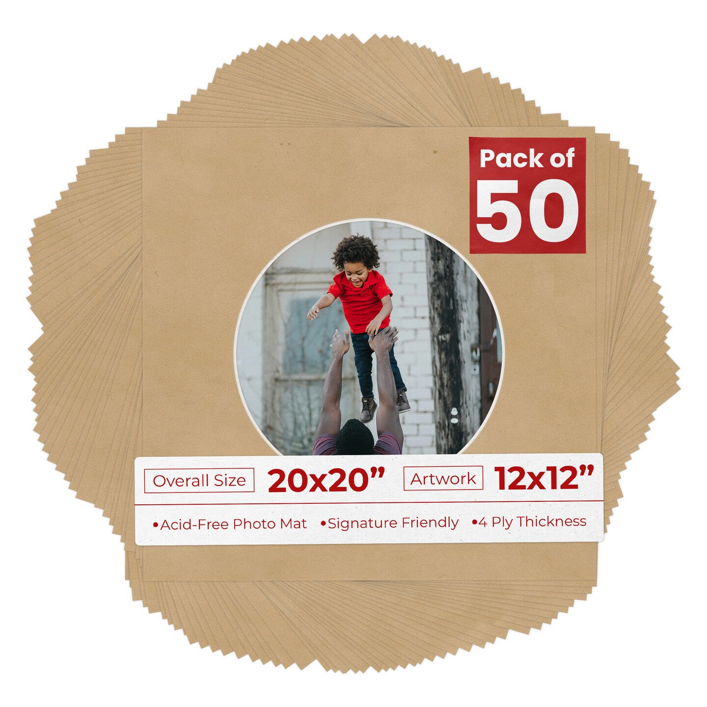 Beige Suede Mat Board for 20x20 Frames - Circle Opening for 12x12 Photos