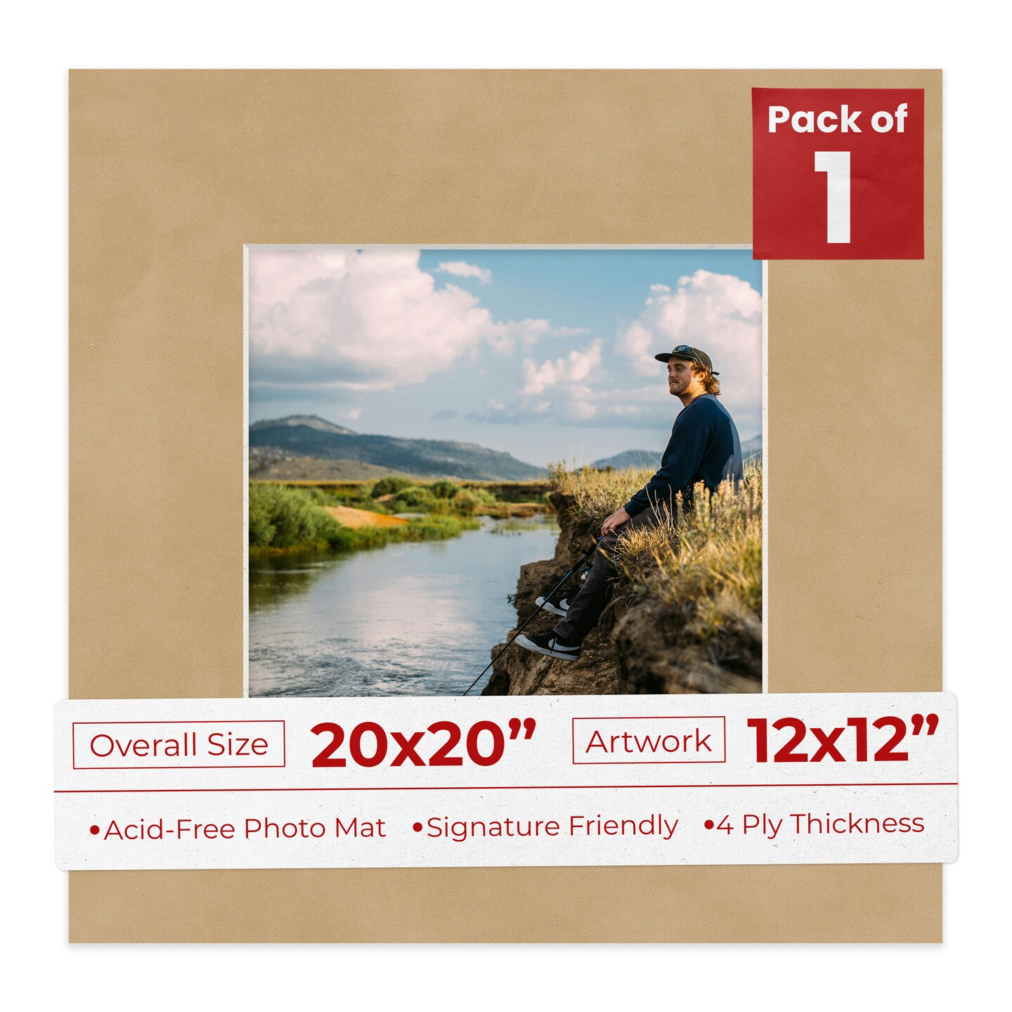 Beige Suede Mat Board for 20x20 Frames - Fits 12x12 Photos
