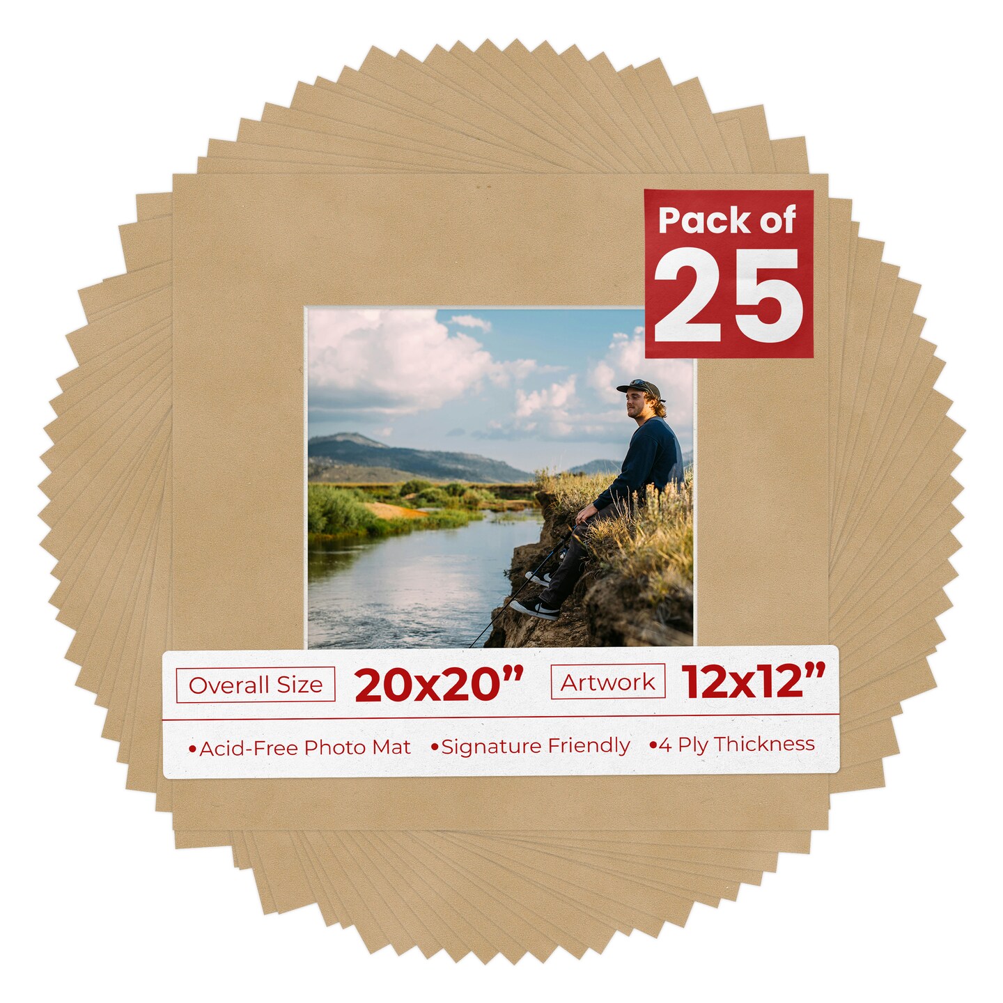 Beige Suede Mat Board for 20x20 Frames - Fits 12x12 Photos