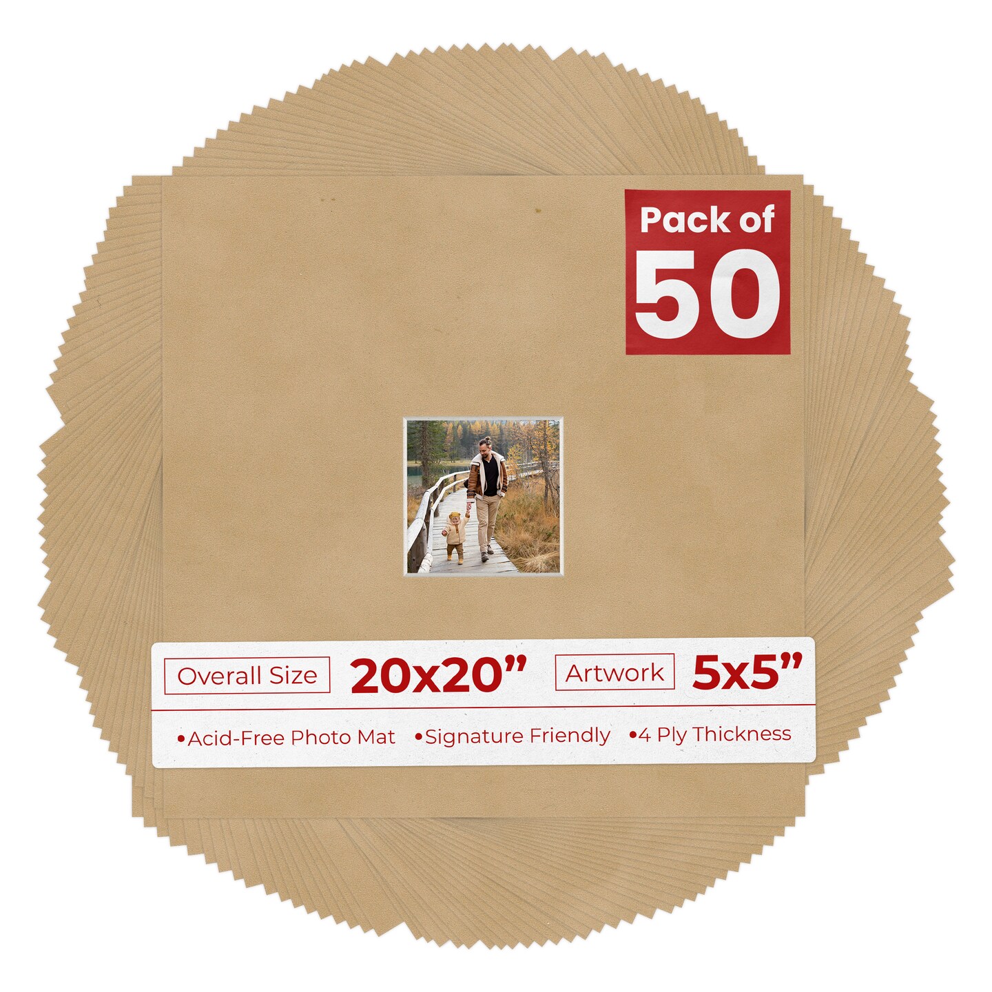 Beige Suede Mat Board for 20x20 Frames - Fits 5x5 Photos