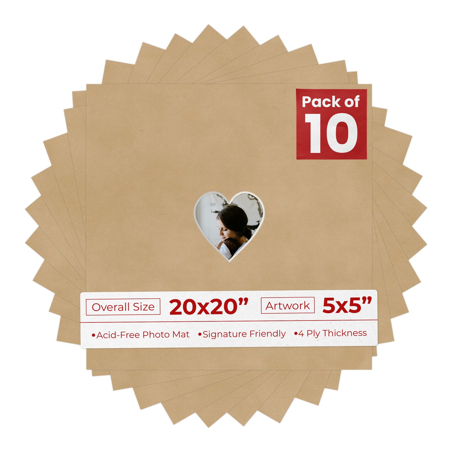 Beige Suede Mat Board for 20x20 Frames - Heart Opening for 5x5 Photos