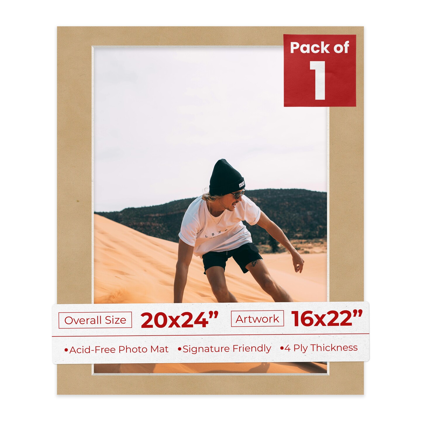 Beige Suede Mat Board for 20x24 Frames - Fits 16x22 Photos