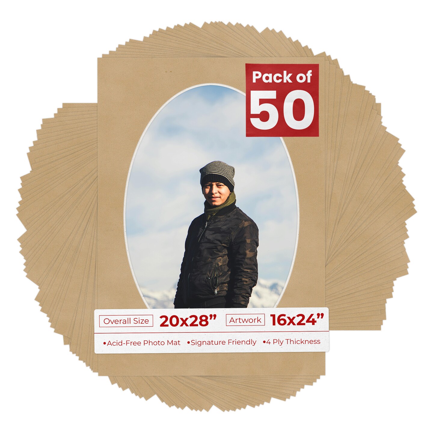 Beige Suede Mat Board for 20x28 Frames - Oval Opening for 16x24 Photos