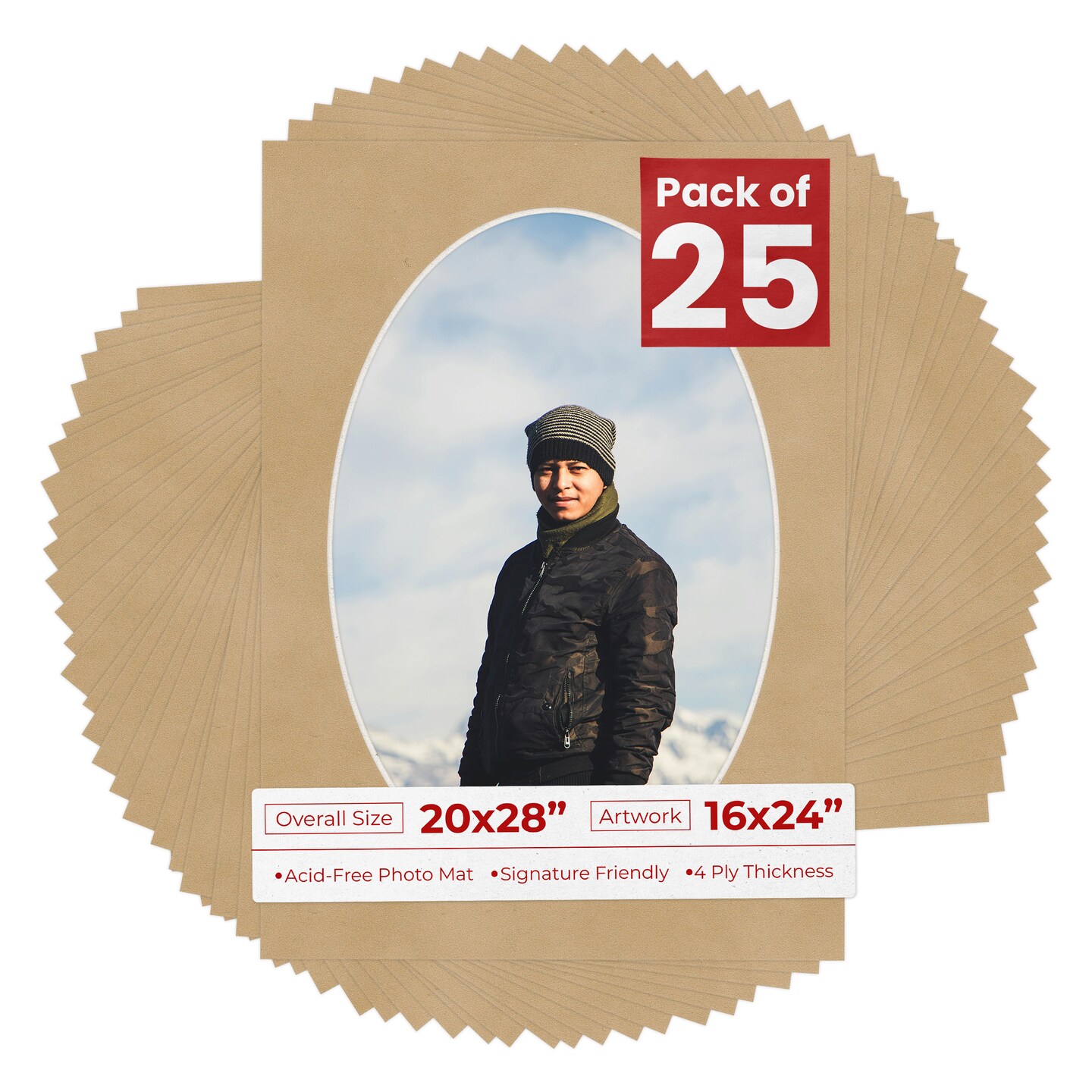 Beige Suede Mat Board for 20x28 Frames - Oval Opening for 16x24 Photos