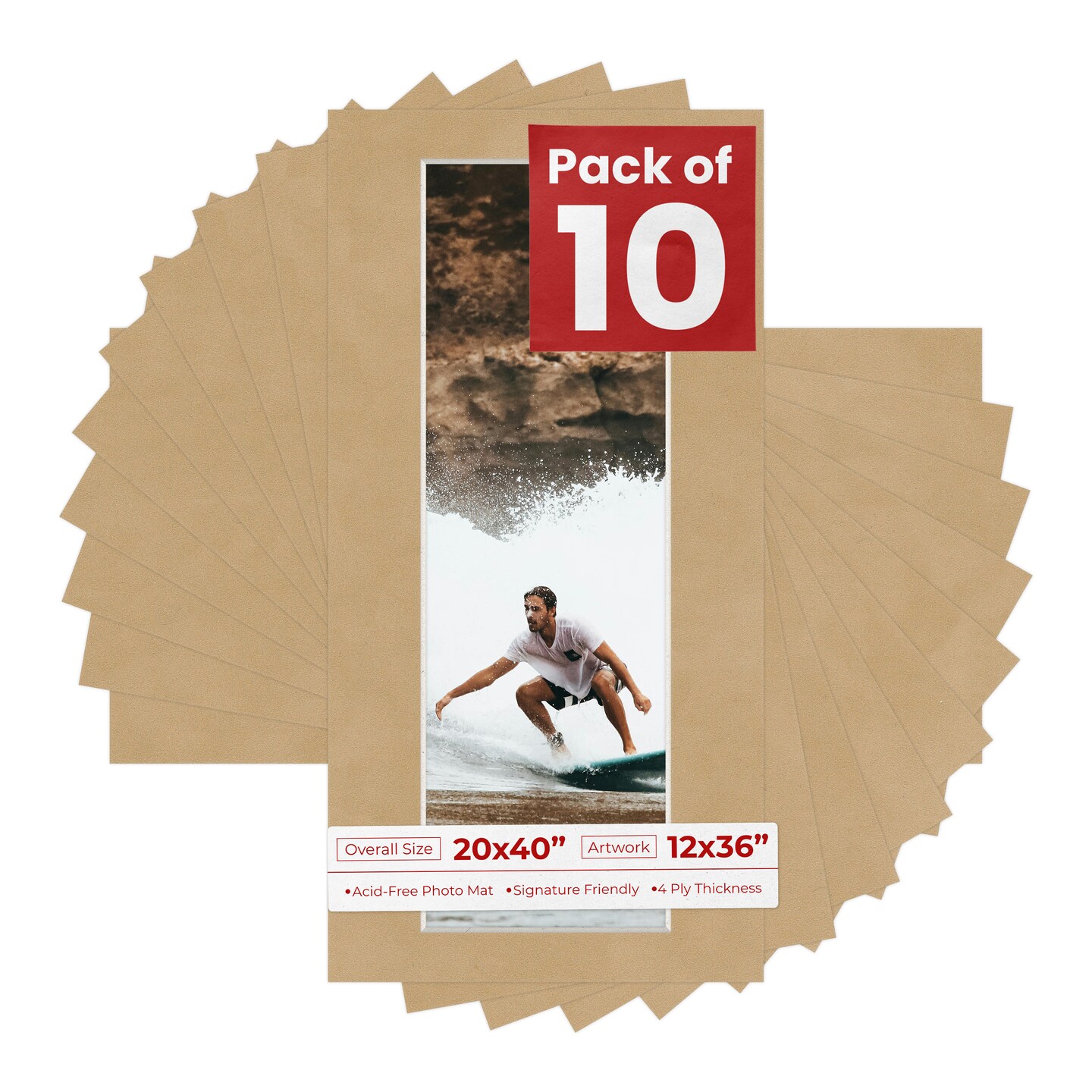 Beige Suede Mat Board for 20x40 Frames - Fits 12x36 Photos